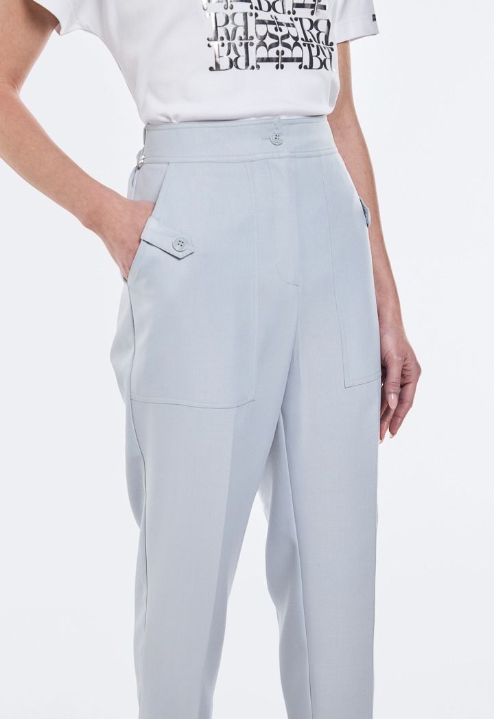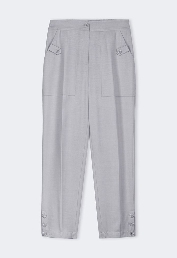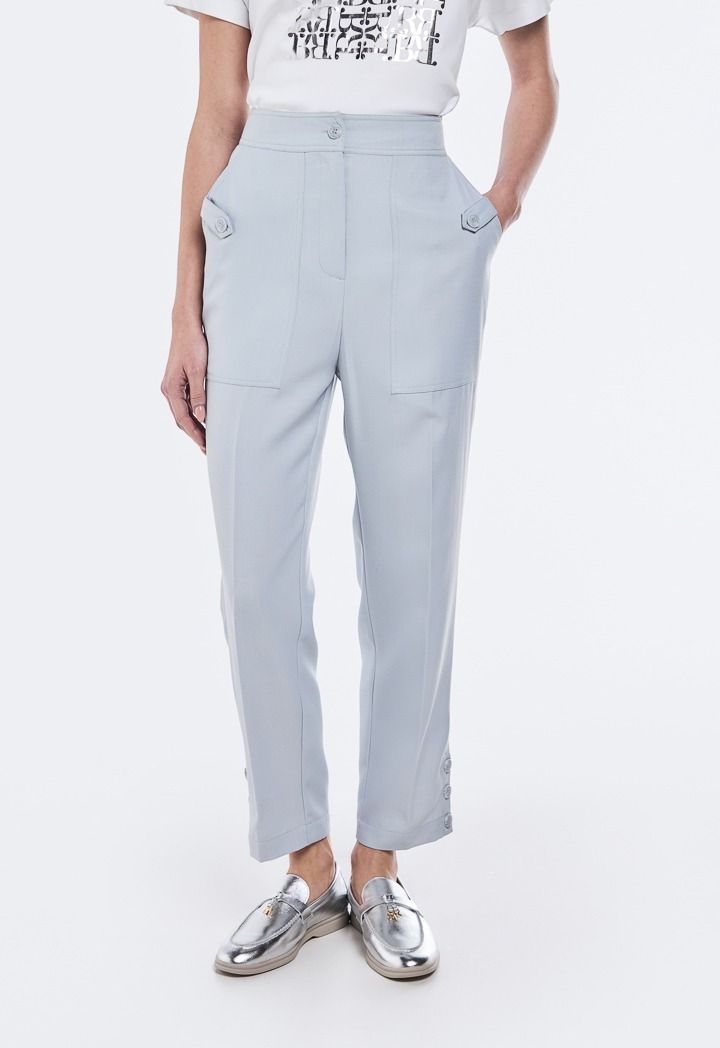 Design: Solid, Side Pockets, High Waist, Buttoned Hem