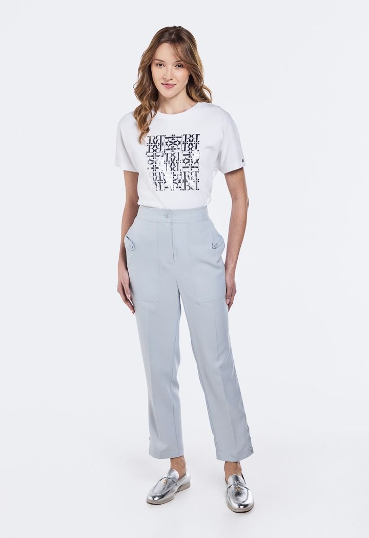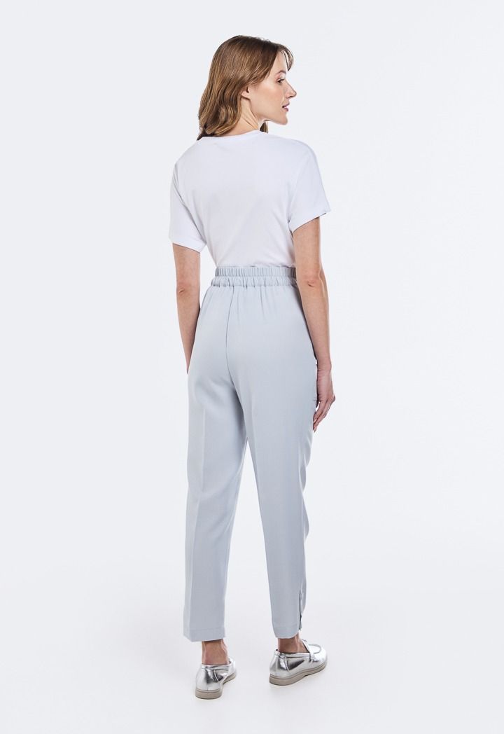 A versatile and easy separate to invest in. Our trousers will go with just about anything in your wardrobe thanks to it's neutral color and high waisted cut. Finished with button details on the hem.