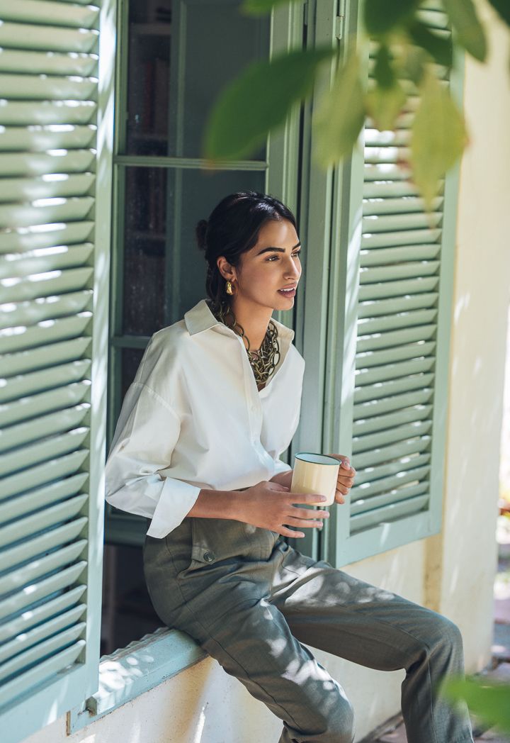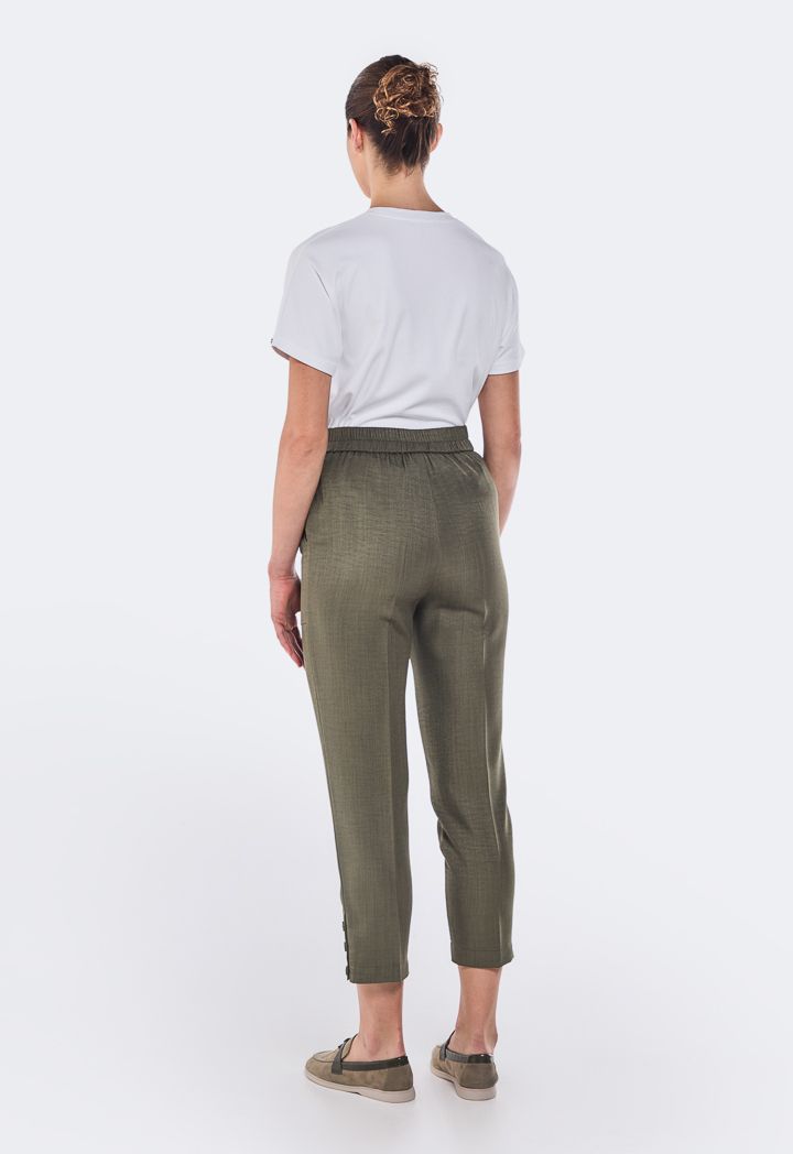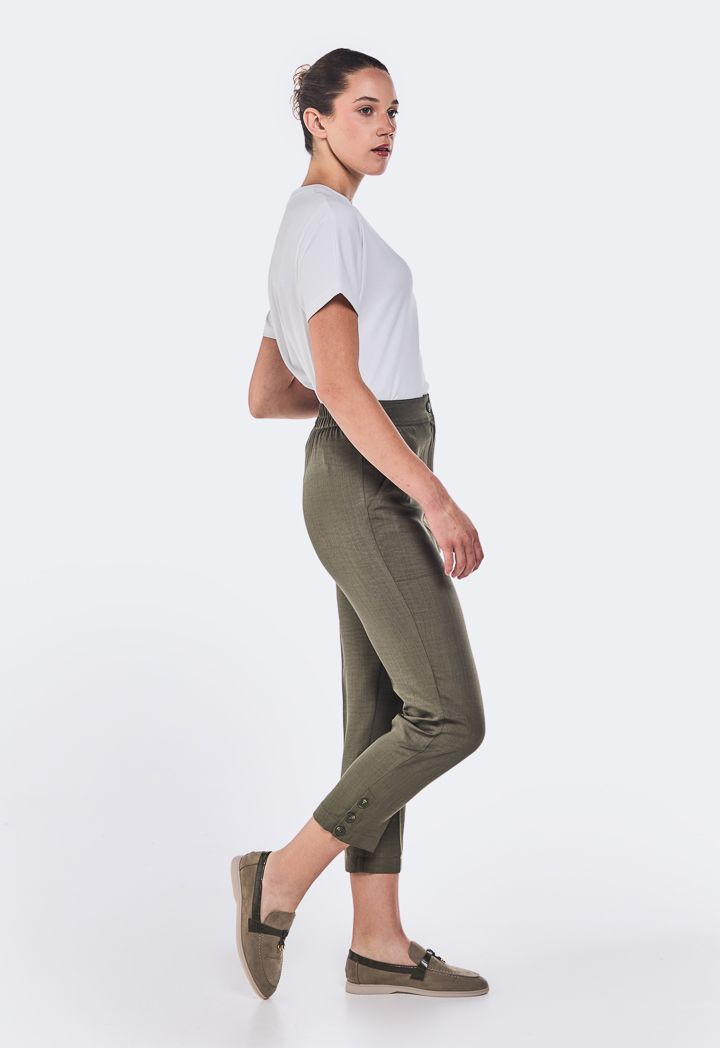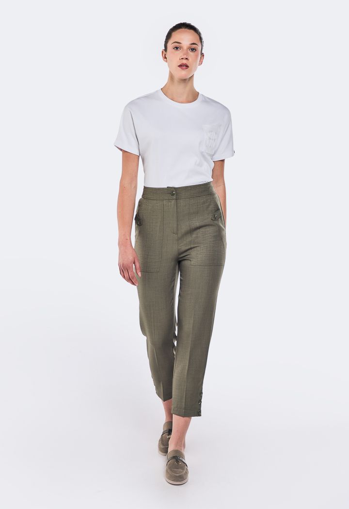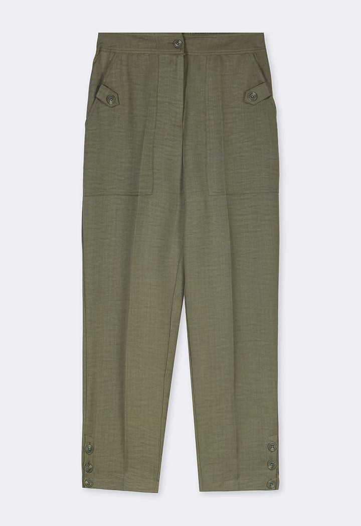 A versatile and easy separate to invest in. Our trousers will go with just about anything in your wardrobe thanks to it's neutral color and high waisted cut. Finished with button details on the hem.