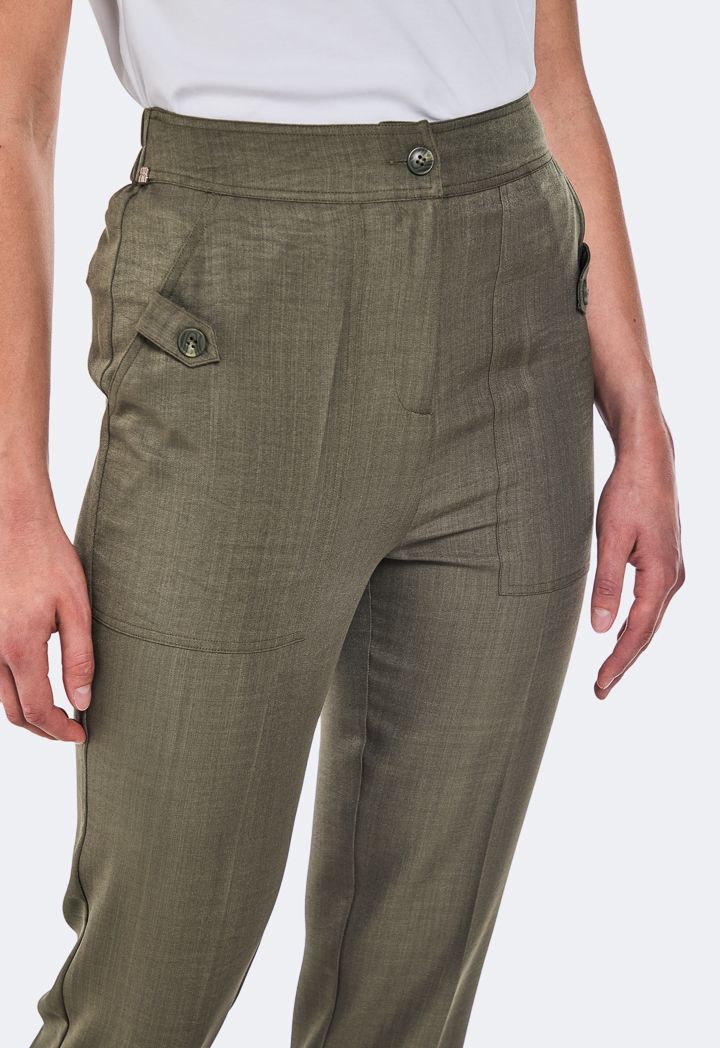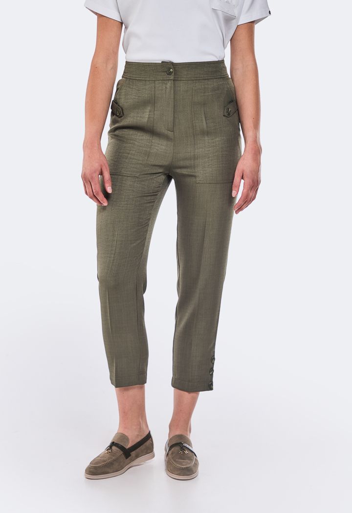 Design: Solid, Side Pockets, High Waist, Buttoned Hem