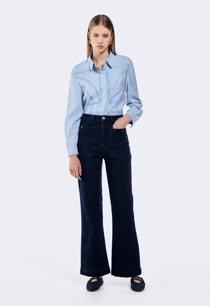 Design: Solid, Front And Back Patch Pockets, High Waist, Straight Cut