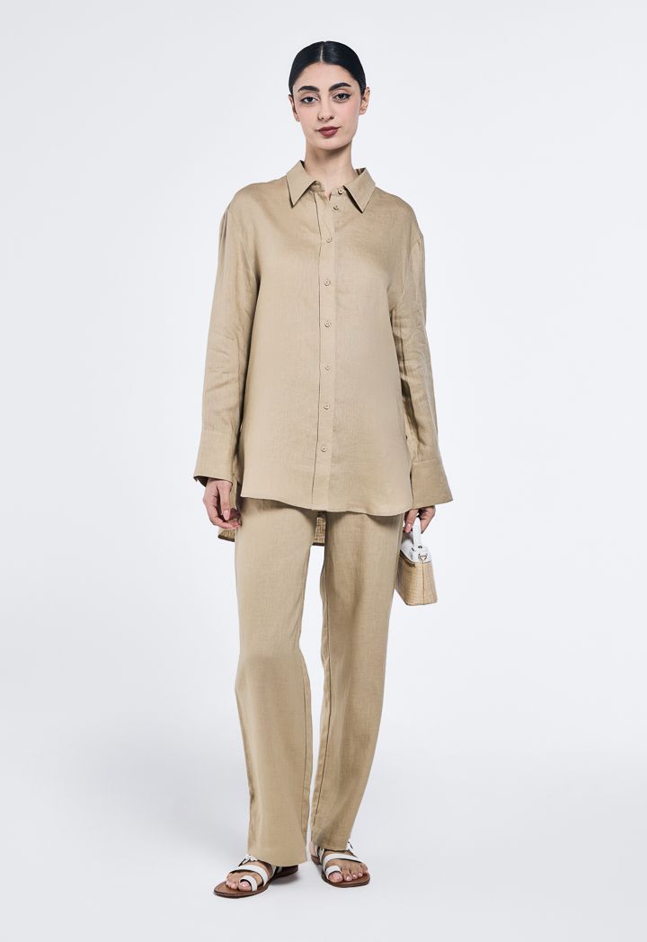 Design : Solid, Side Pockets, Straight Leg, High Waist