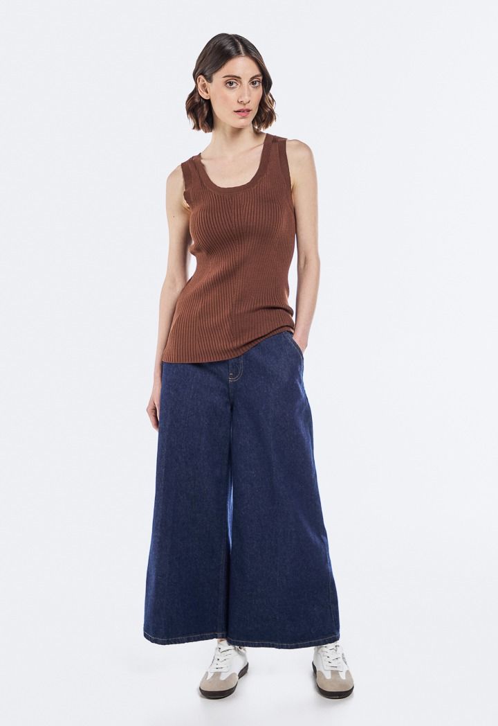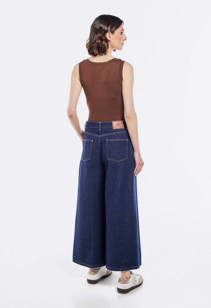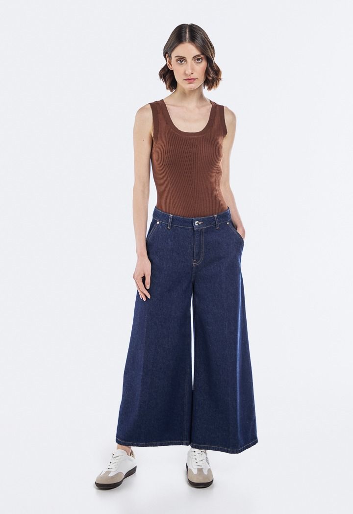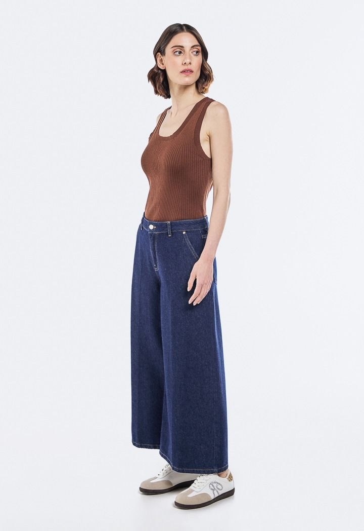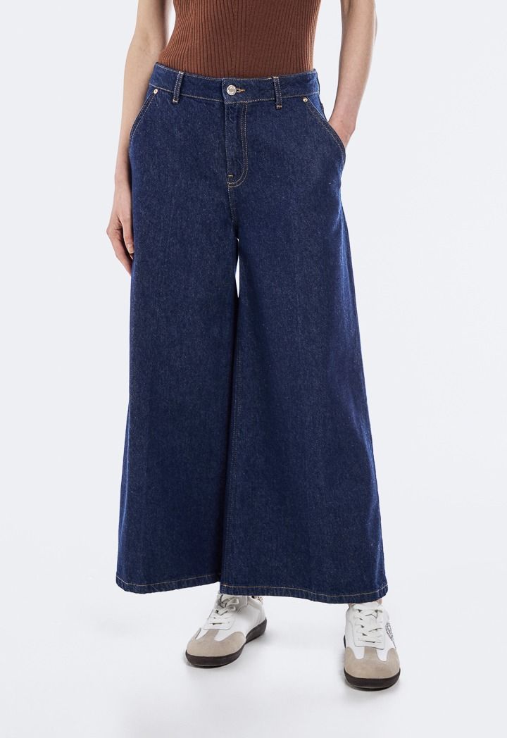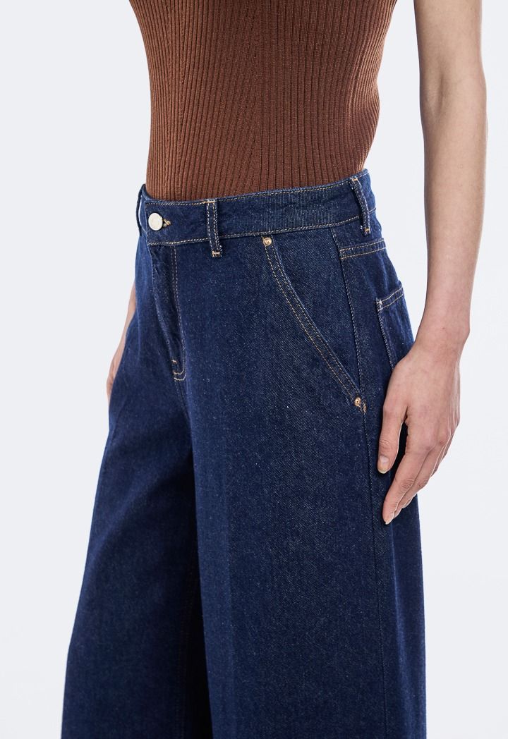 Design: Solid, Denim, Side & Back Pockets, Wide Legs, High Waist, Palazzo