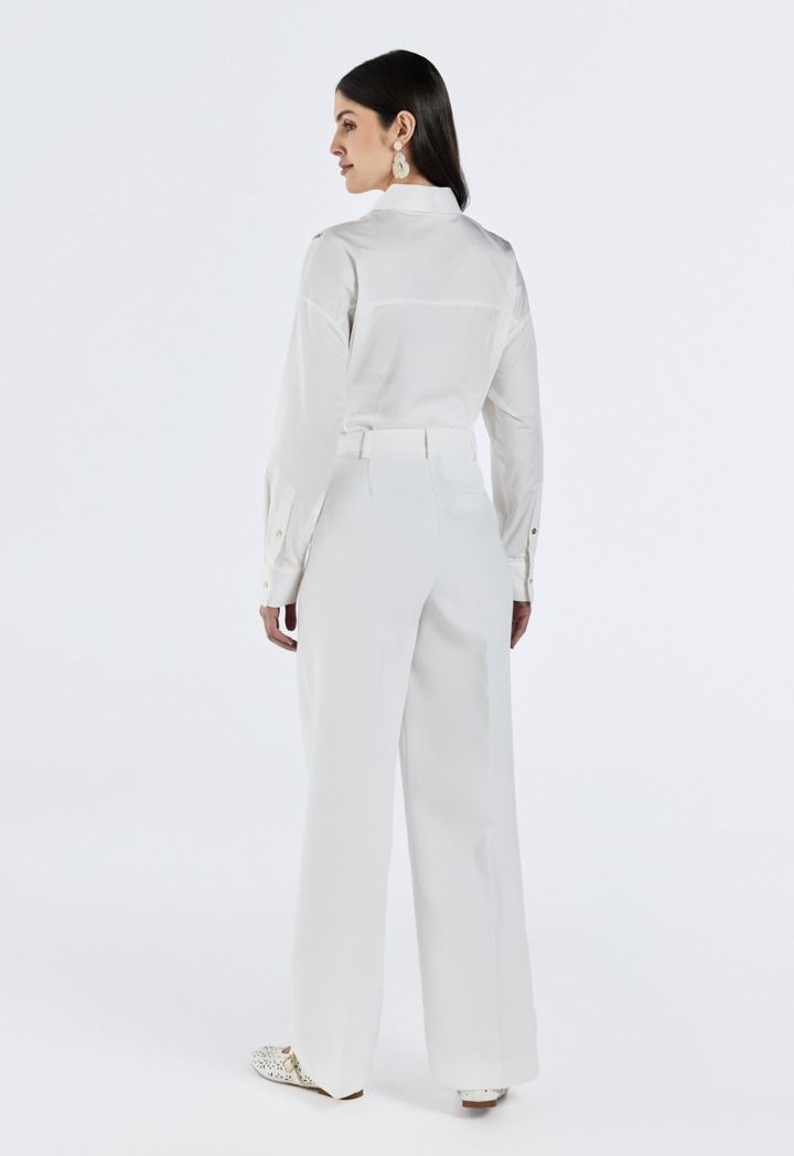 Design: Solid , Pleated Waist ,Side Pocket, Straight Cut, High Waist