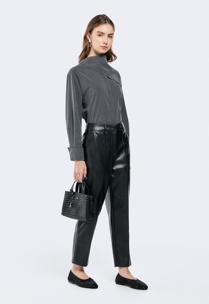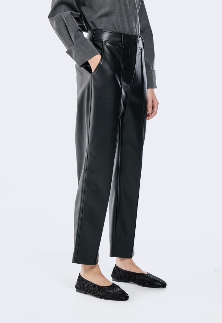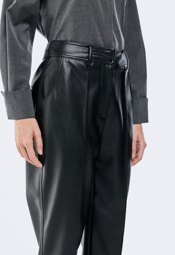Design: PU Leather, High Waist, Solid, Side Pockets