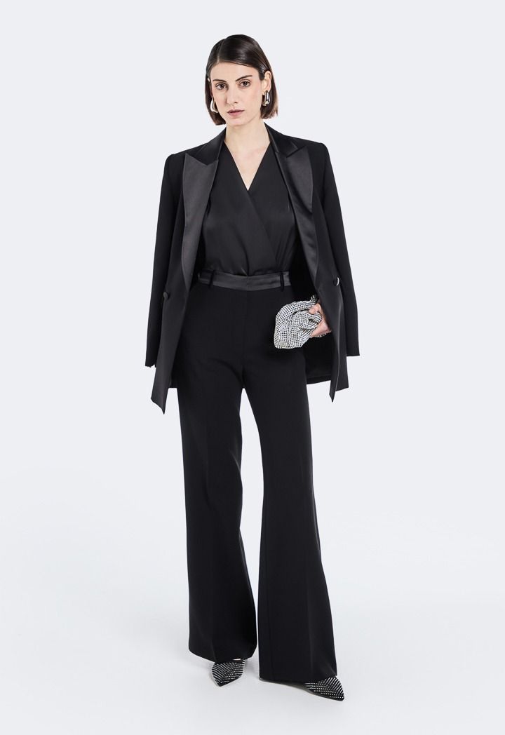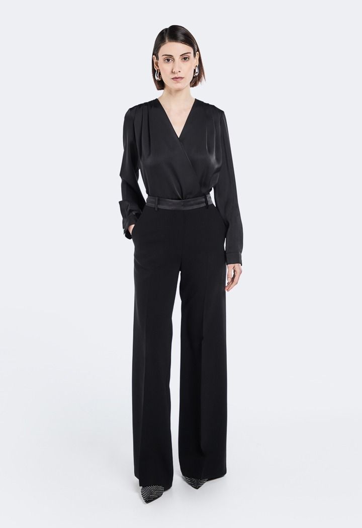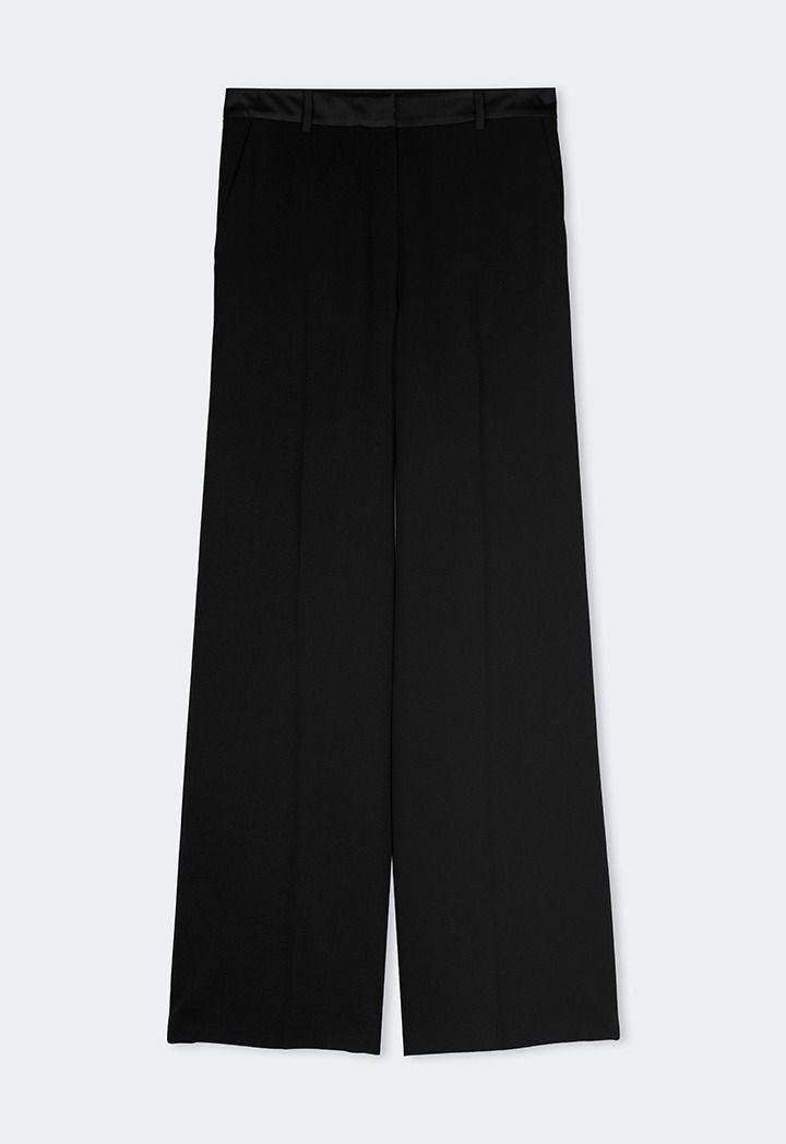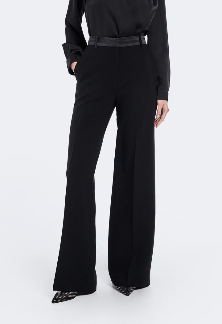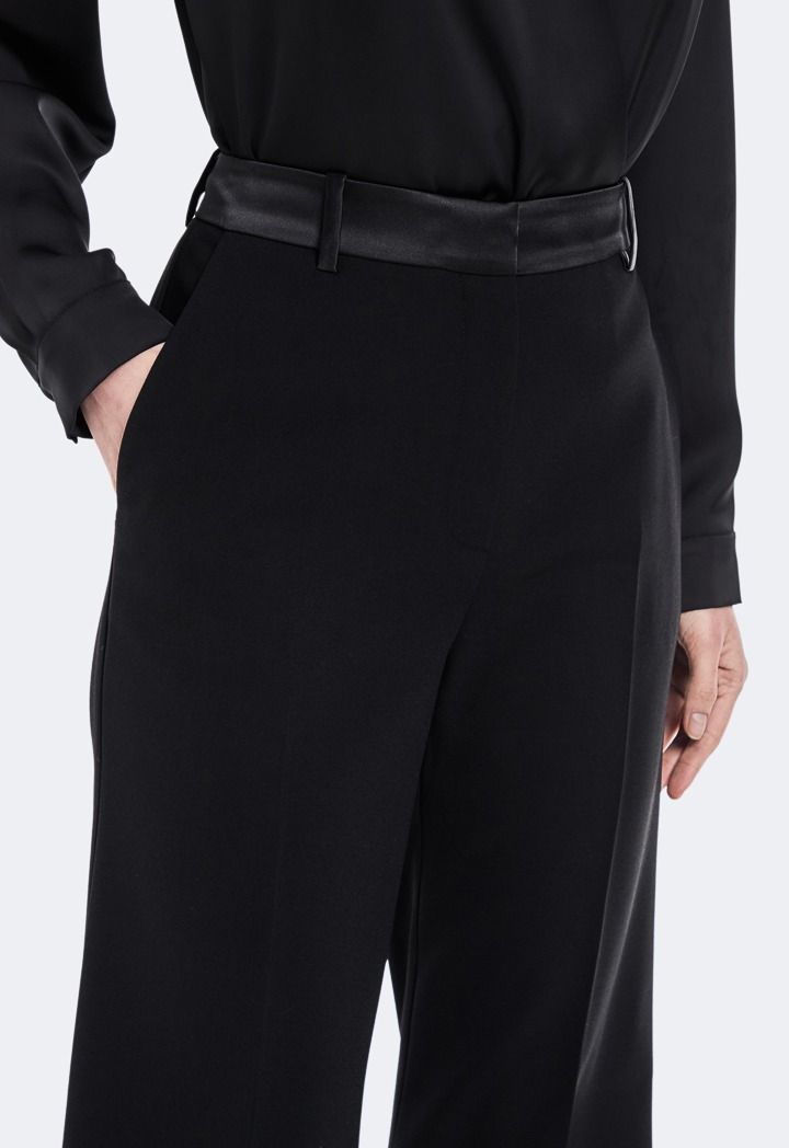 Design: Straight Cut, Side Pockets, Solid, High Waist, Satin Trim