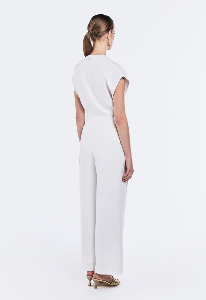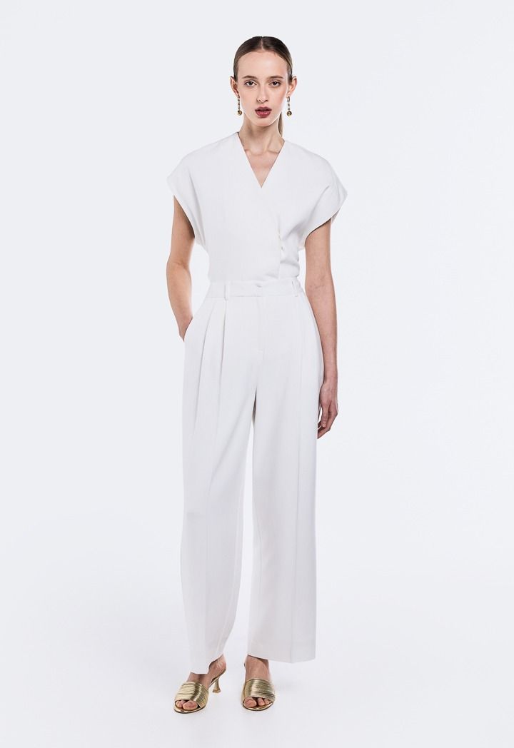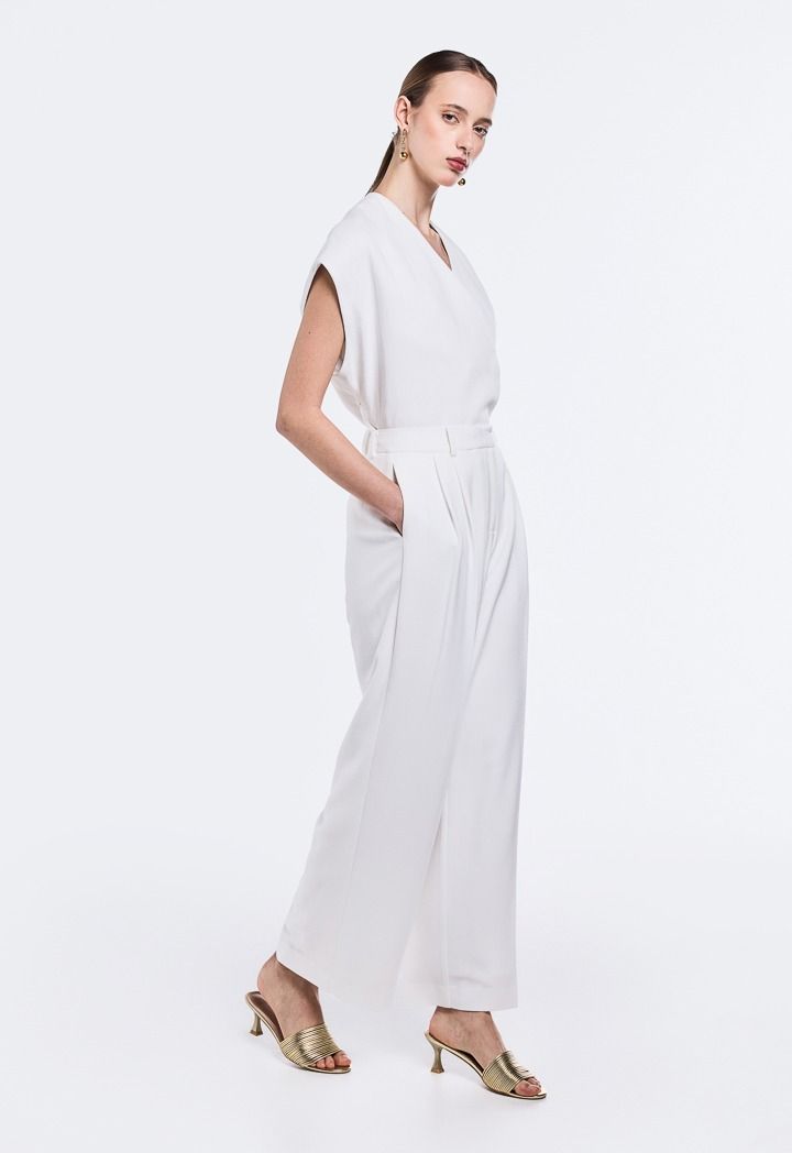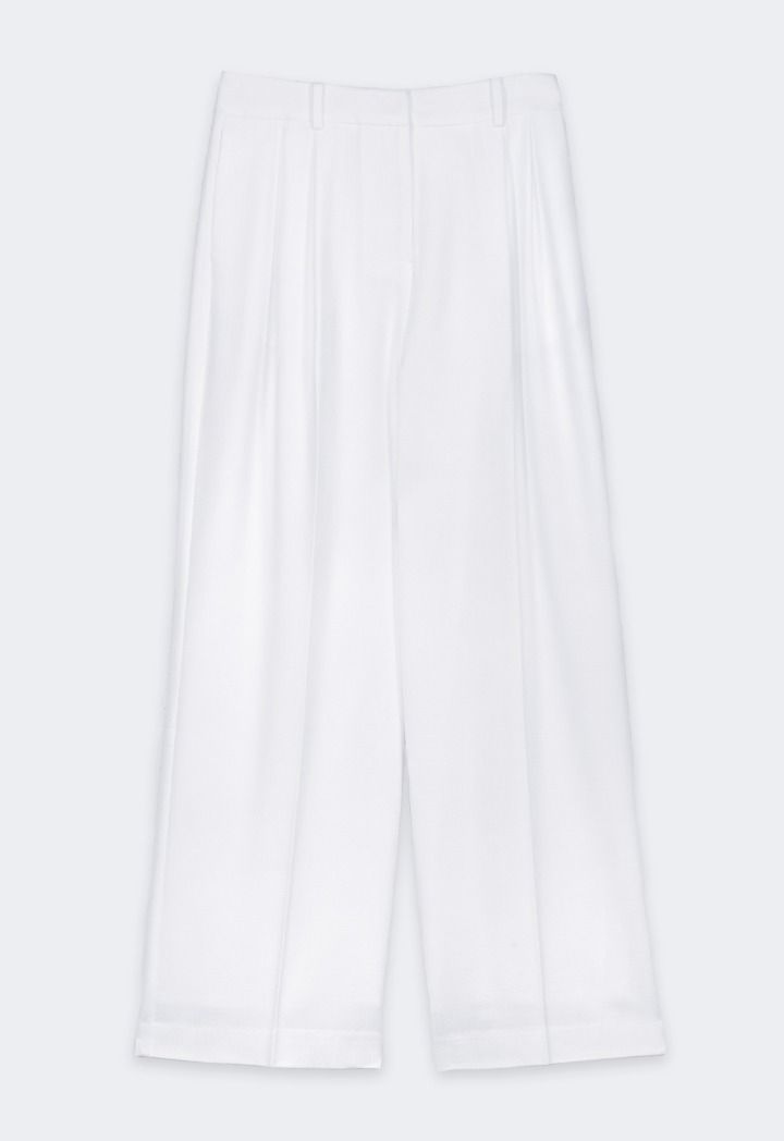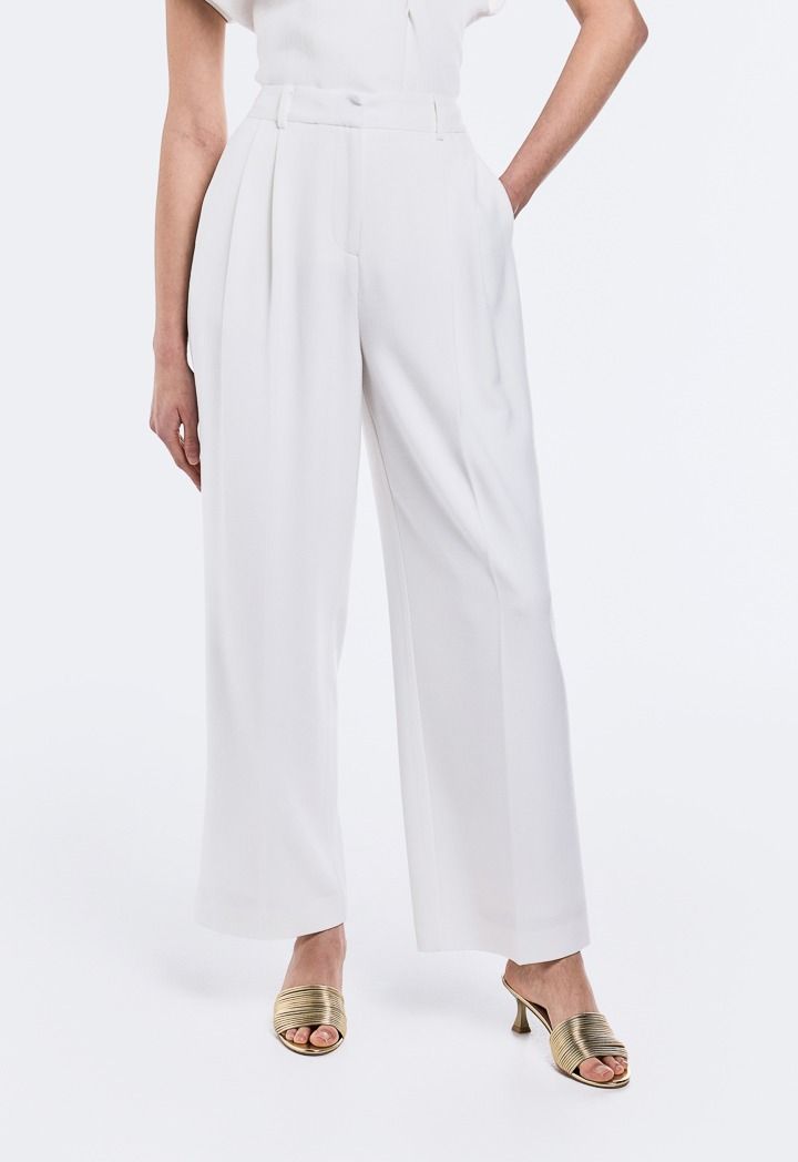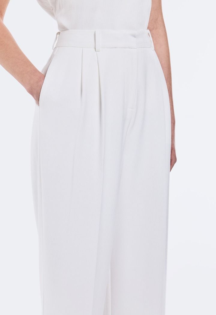 Design: Solid, Wide Leg, High Waist, Side Pockets, Pleated Waist, Attached Lining