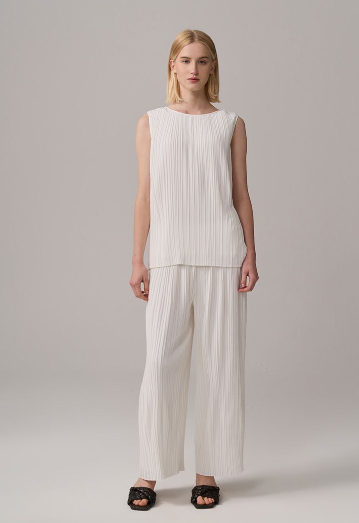 Design: Solid, Pleated, High-Waist, Wide Legs, Attached Lining