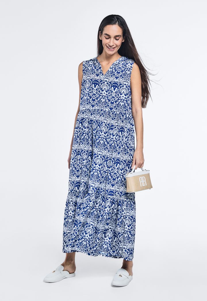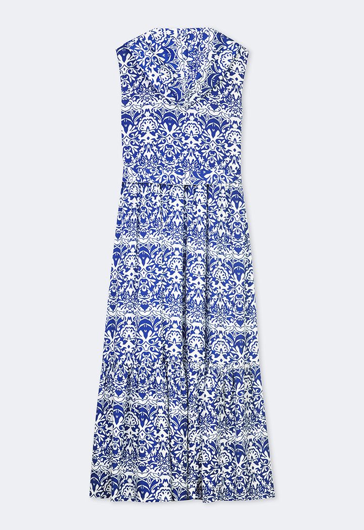Design: Printed, Tiered, Flared, Side Pockets, Belted
