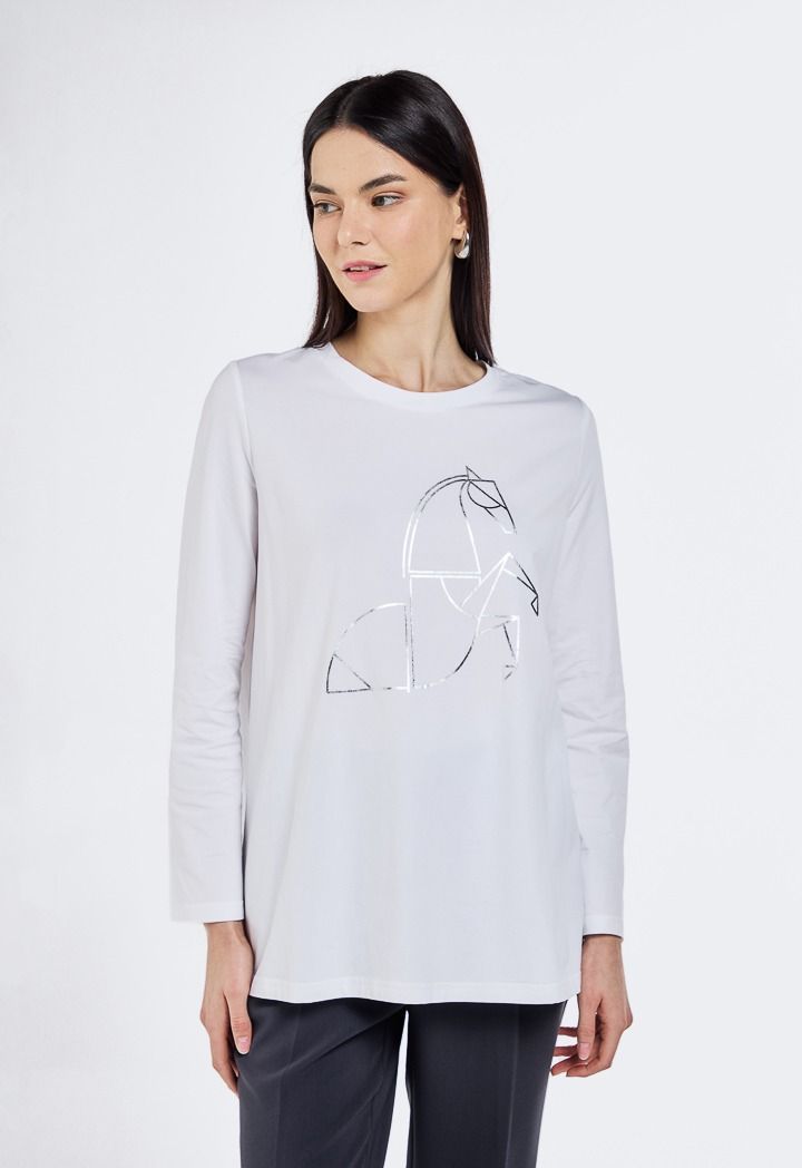 Turn everyday moments into runway moment, this horse foil print top adds a radiant touch to your casual style.