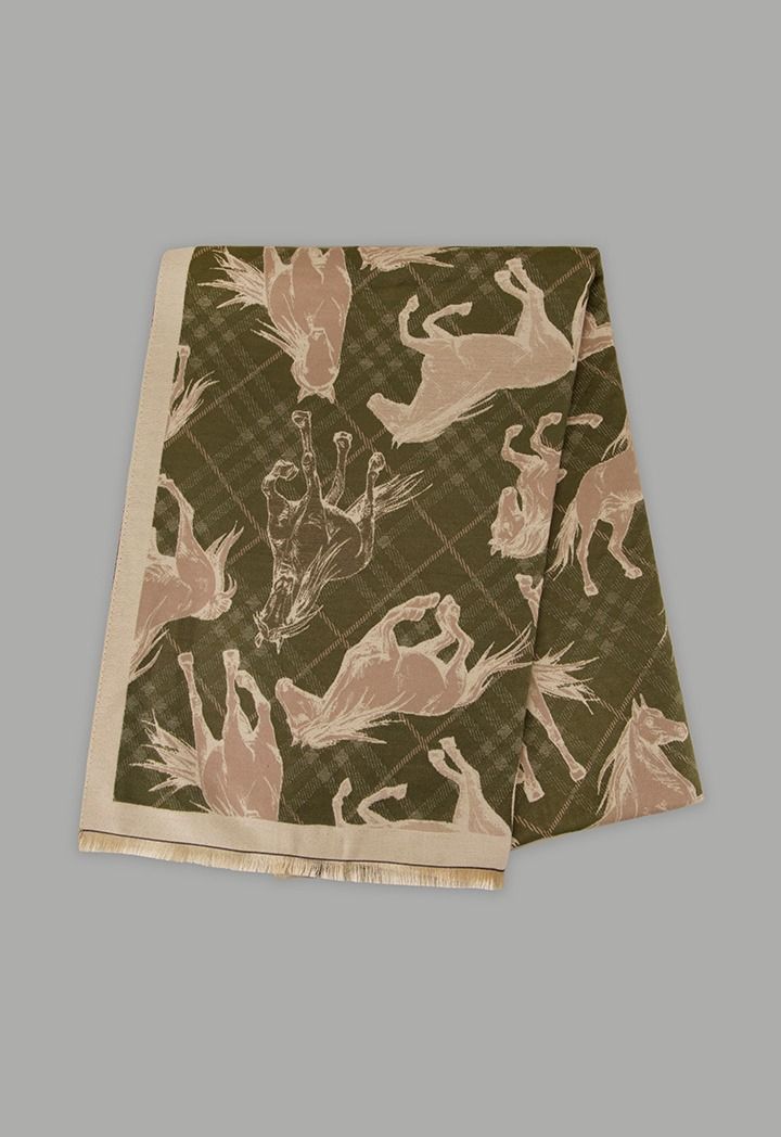 This contrast horse-print pashmina scarf combines warmth with effortless style.