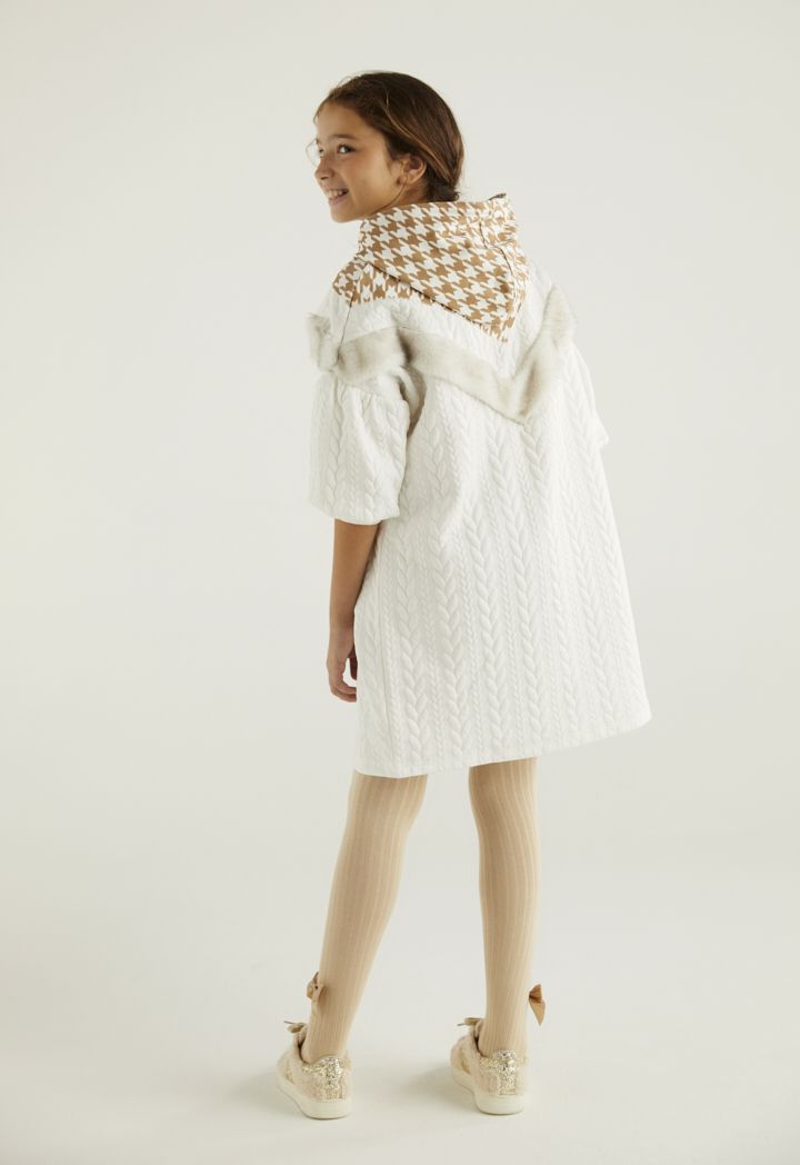 Design : Textured, Houndstooth Pattern, Hoodie, Faux Fur