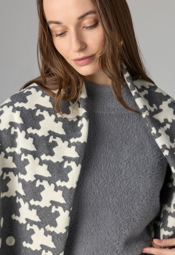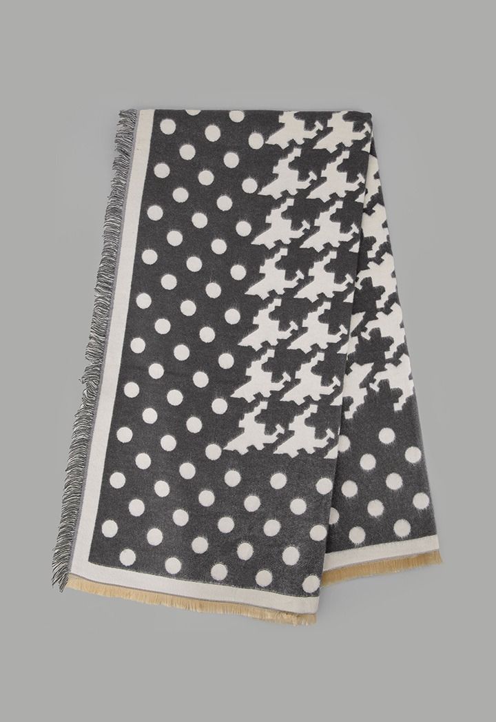 An iconic pashmina scarf that features a Houndstooth Polka Dots design.