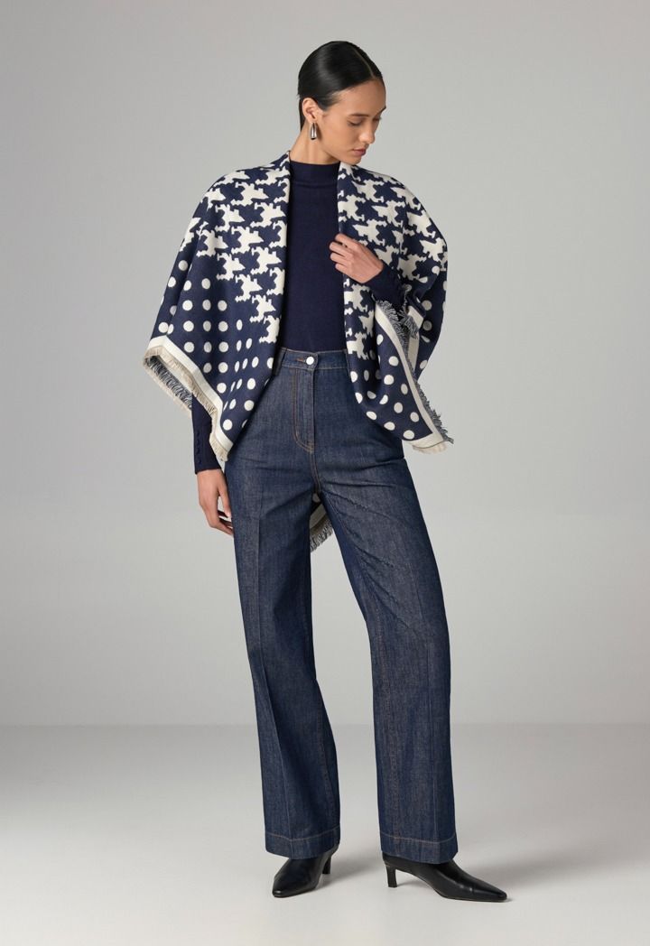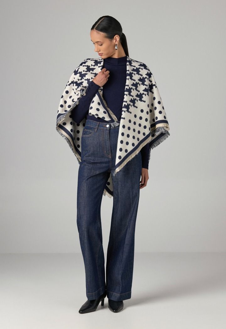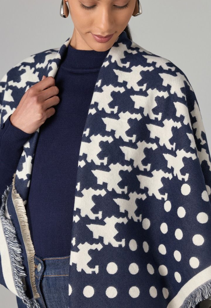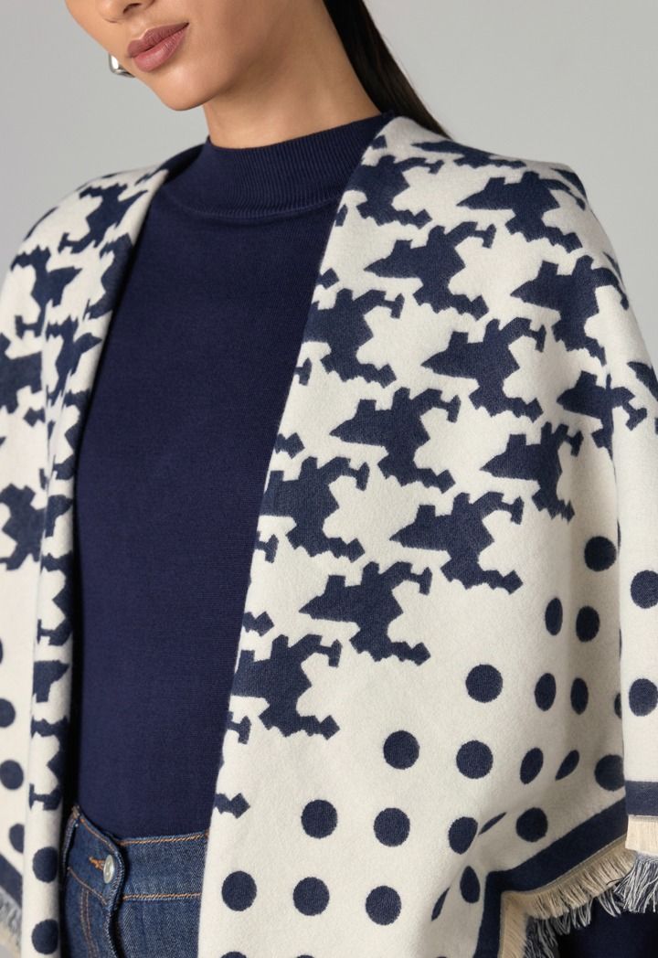 An iconic pashmina scarf that features a Houndstooth Polka Dots design.