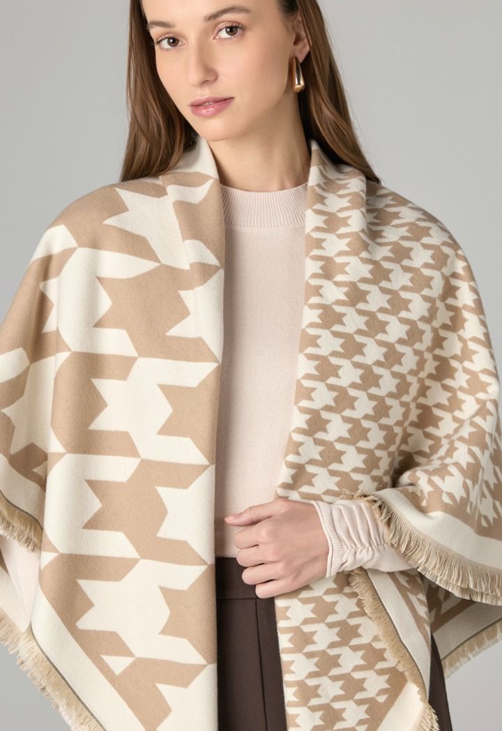 Engulf yourself with warmth with this classic houndstooth patterned knitted winter shawl.