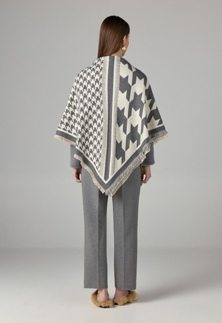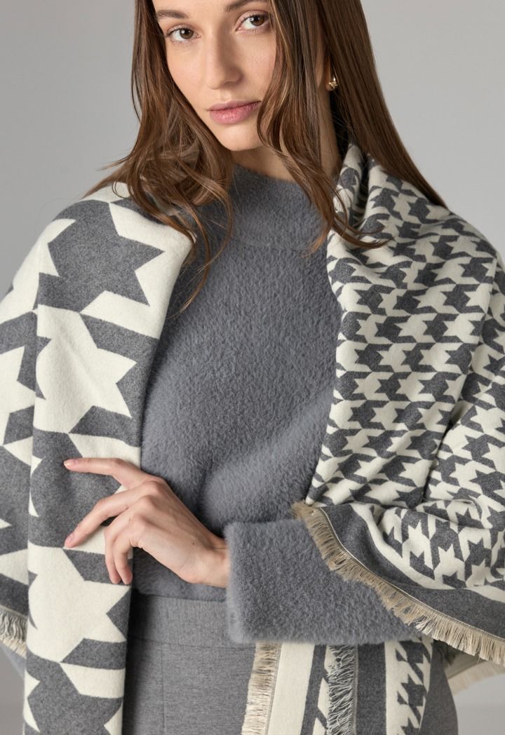 Engulf yourself with warmth with this classic houndstooth patterned knitted winter shawl.