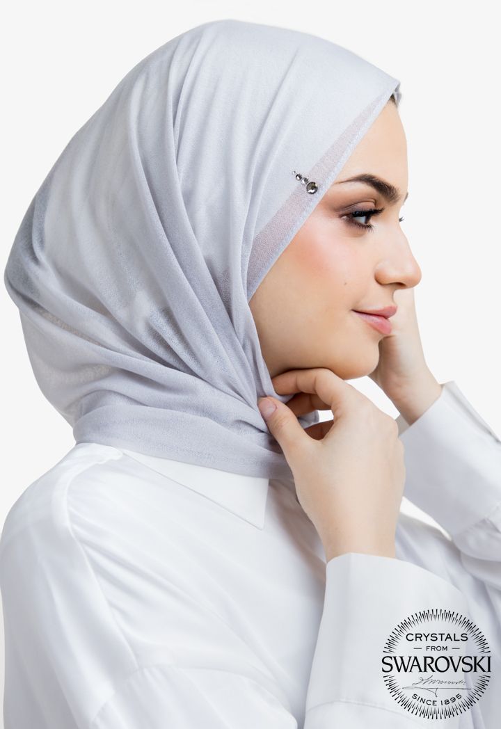A hijab that combines simplicity with sparkle thanks to its plain color and crystal embellishment that only adds to its style.