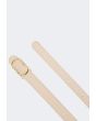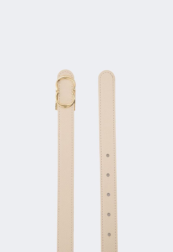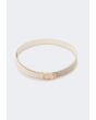 Distinguished by a metallic monogram buckle that is the show stealer with a solid waist strap.