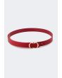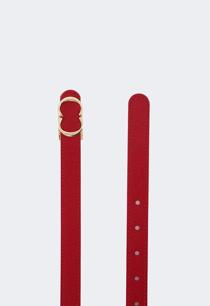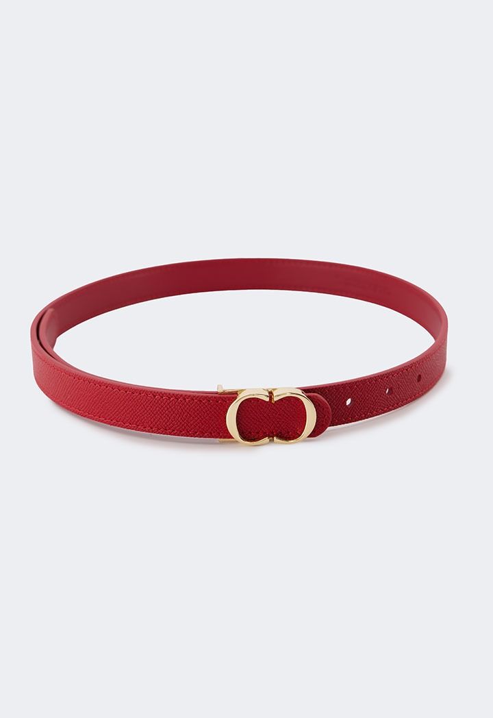 Distinguished by a metallic monogram buckle that is the show stealer with a solid waist strap.
