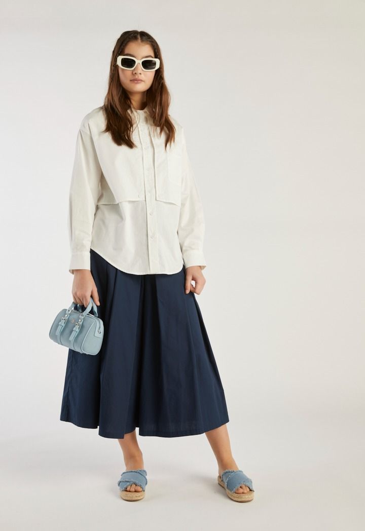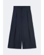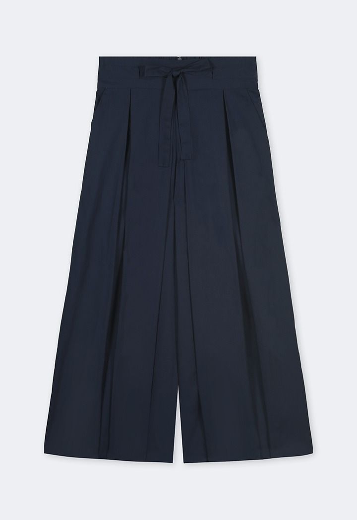 A solid pleated palazzo pair of trousers that features a gathered waist.