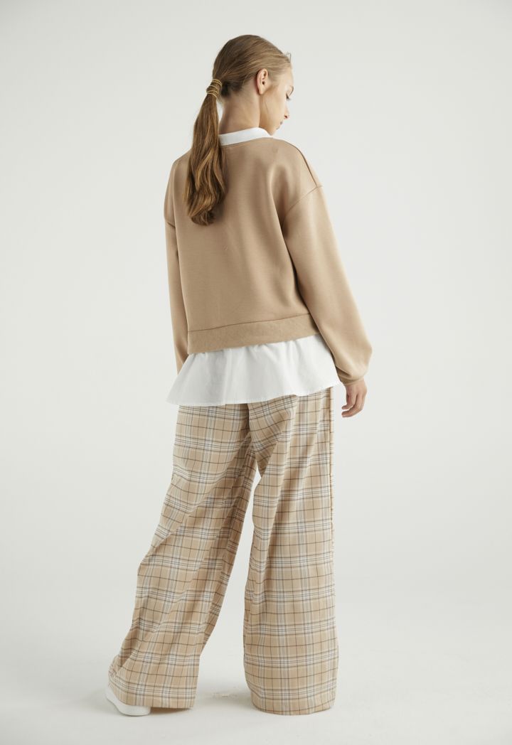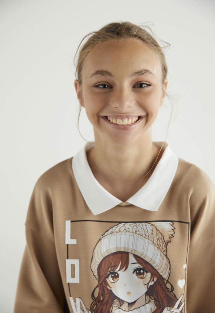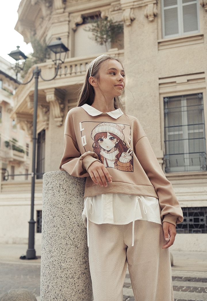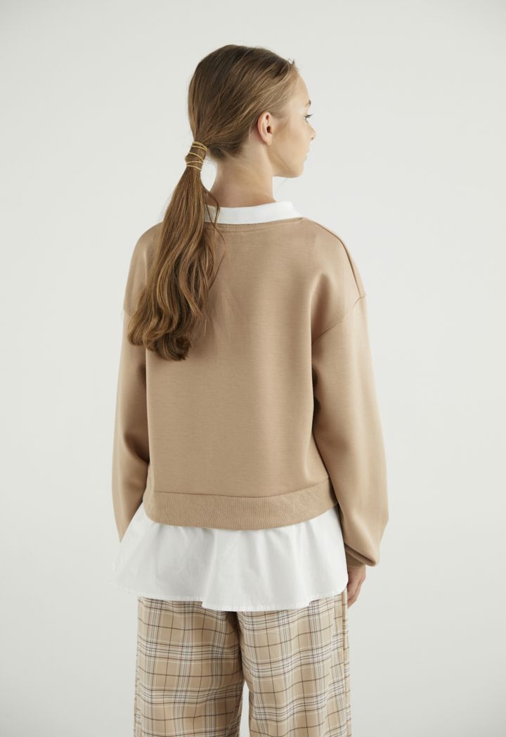 Add this sweatshirt to your winter closet, featuring a soft knitted and printed design.