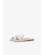 The devil is in the details and between the stitch-trim detailing and plush padding, there is no shortage of design elements to adore, with a modern square-toe and walkable soles, this elegant chalk-white number will come in handy for any occasion.