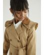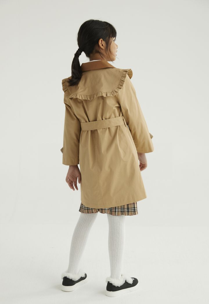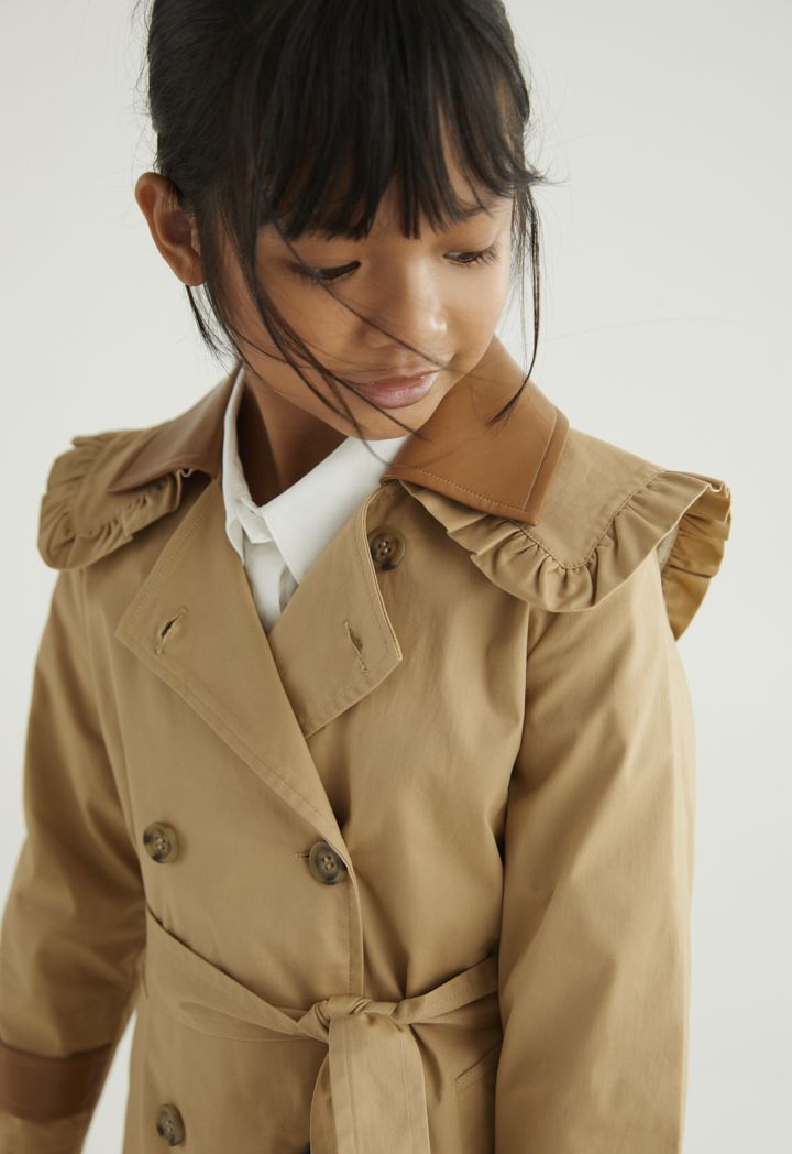An iconic trench coat that features luxurious PU Leather and ruffled touches here and there.