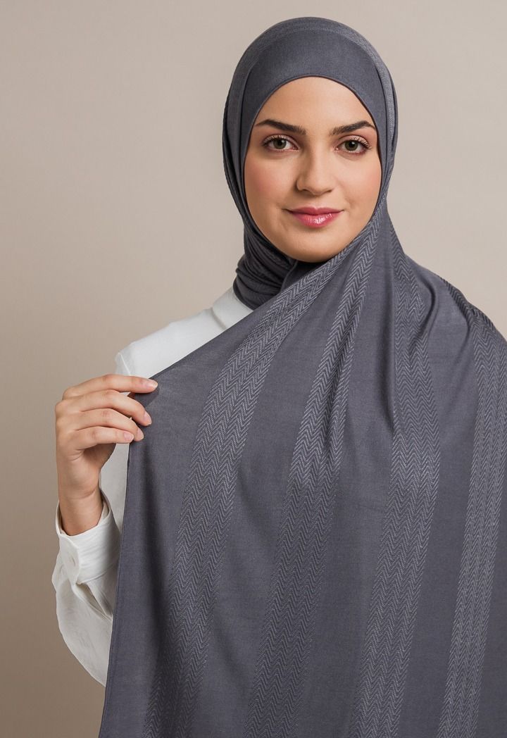 Invest in your hijab collection with this intricate embroidered solid hijab.