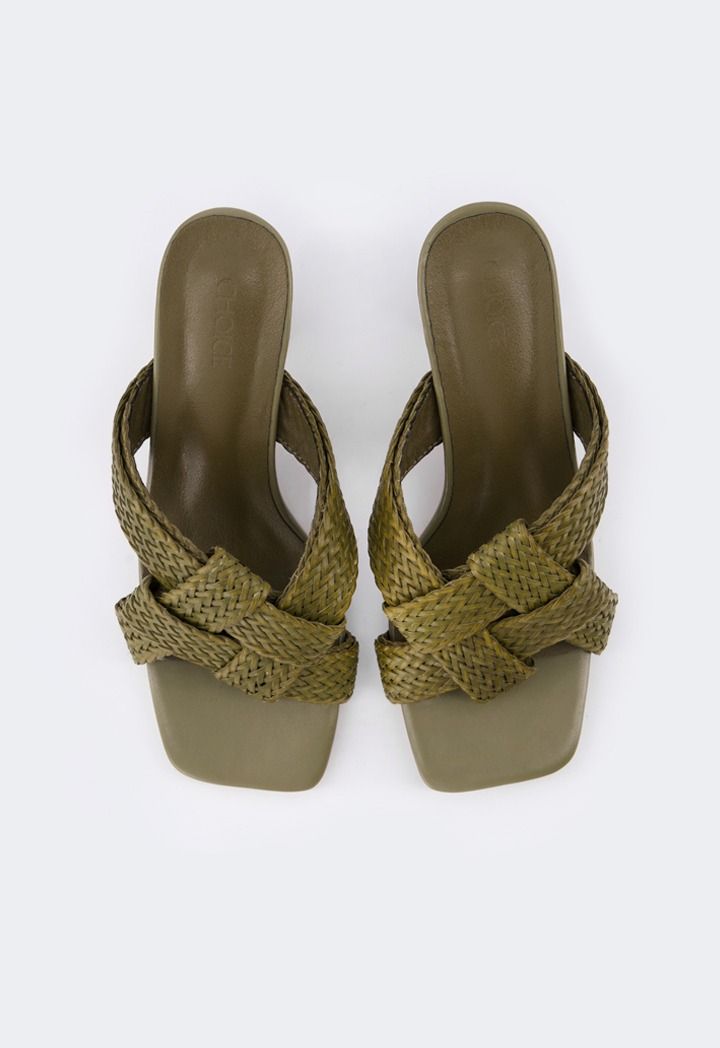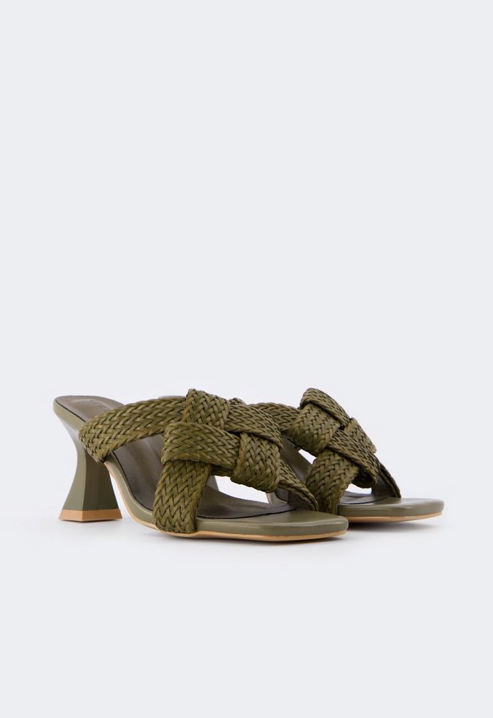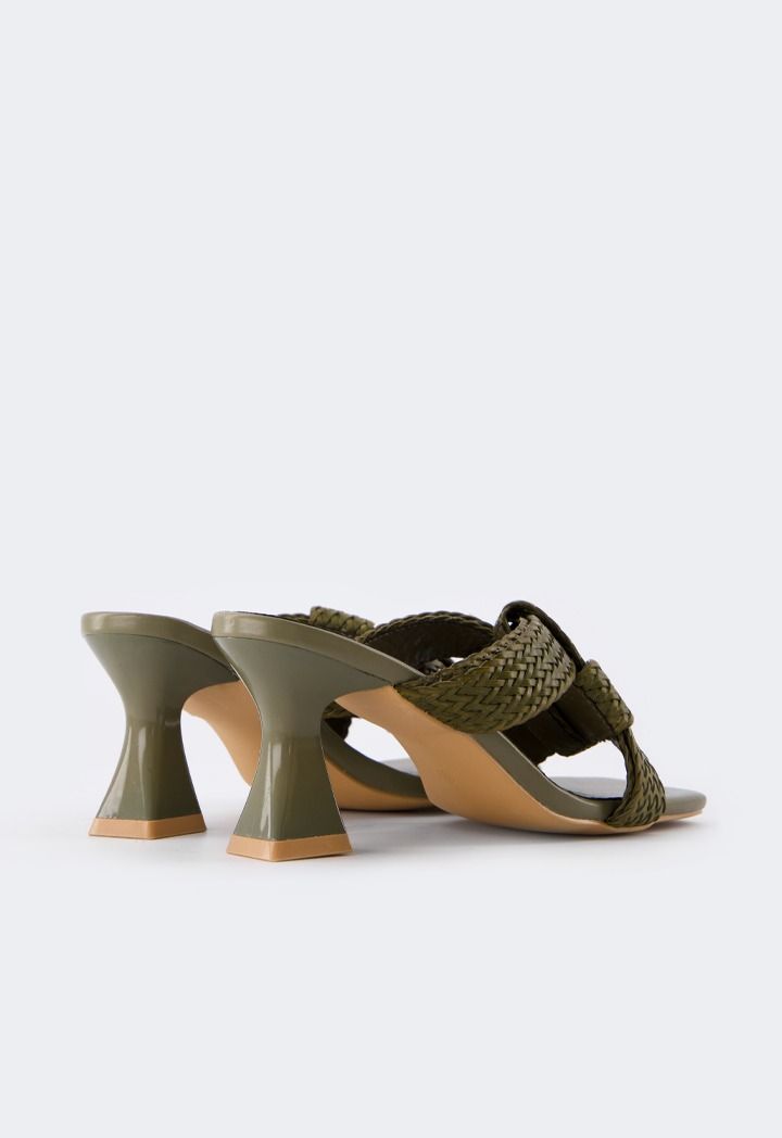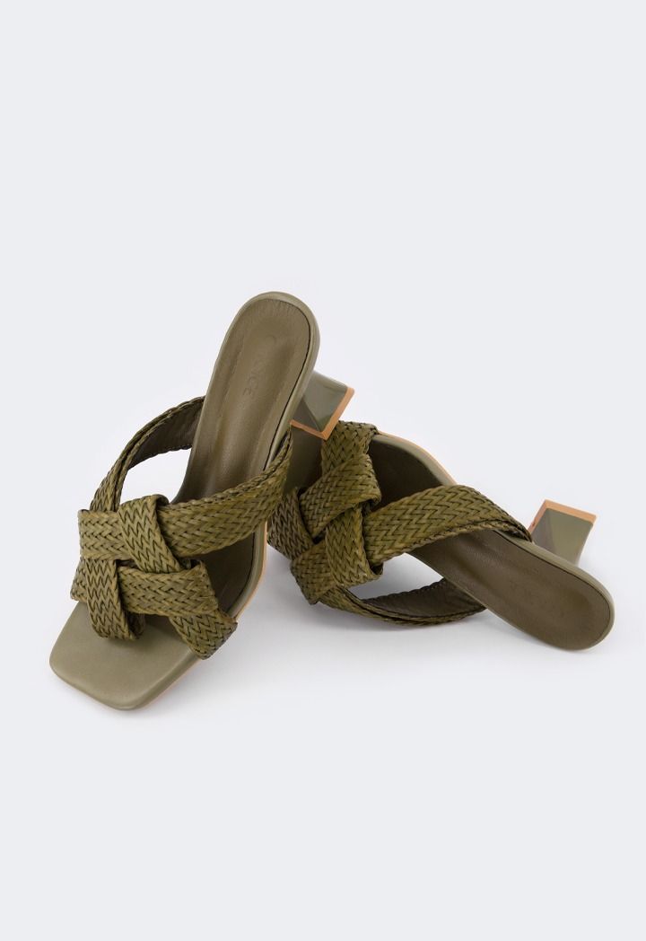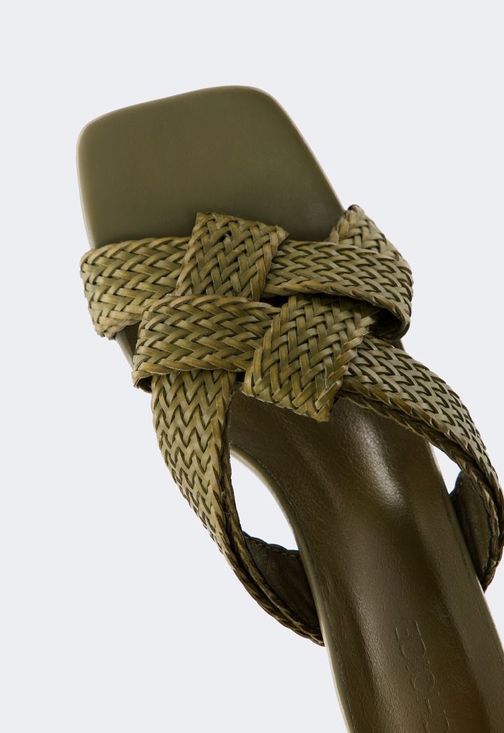 Intricate Faux Straw Heeled Sandals |
