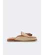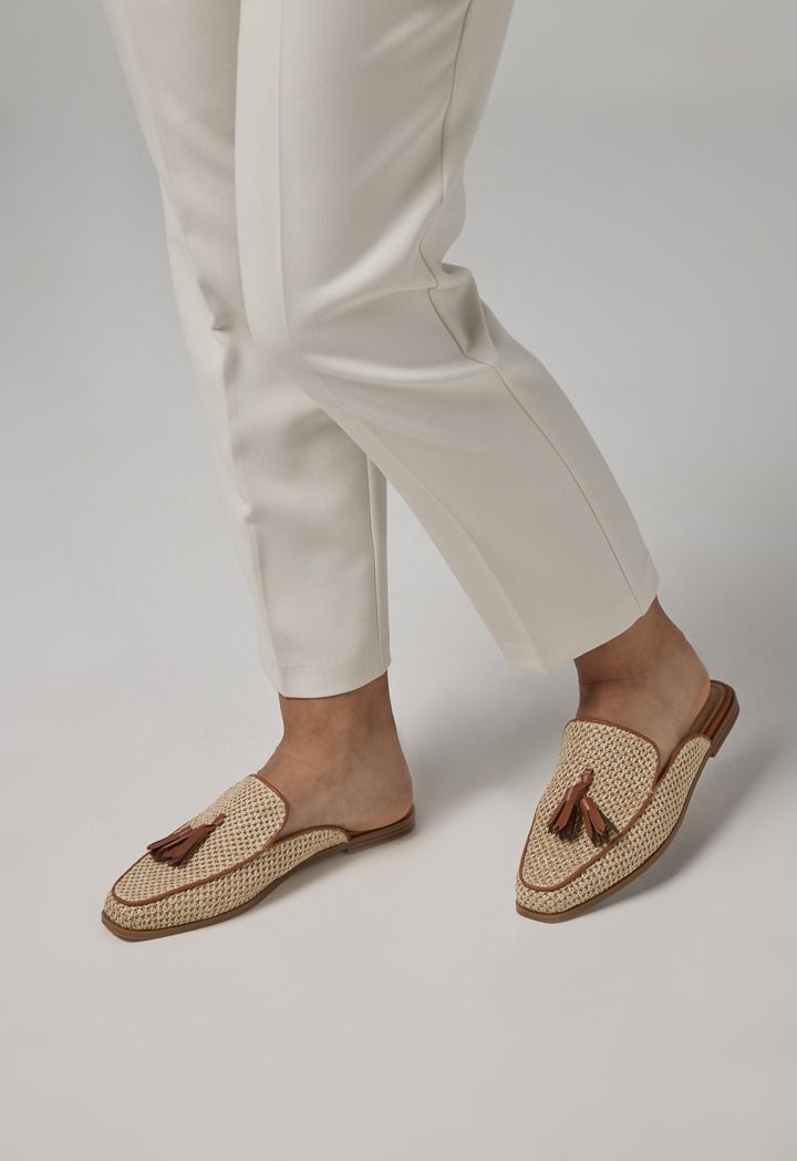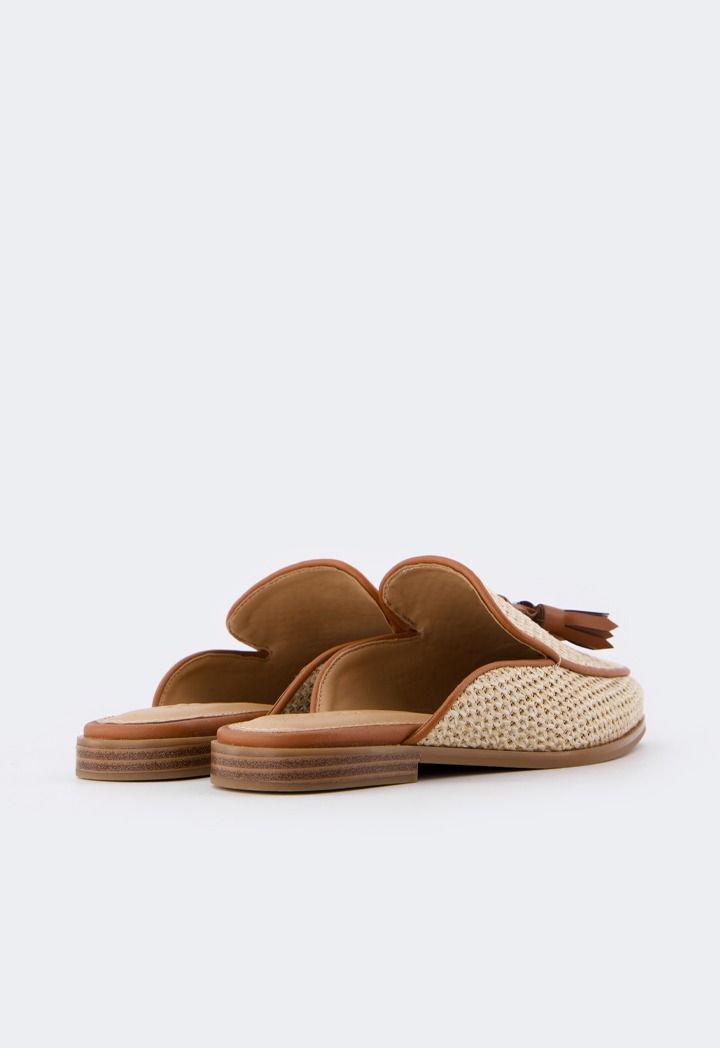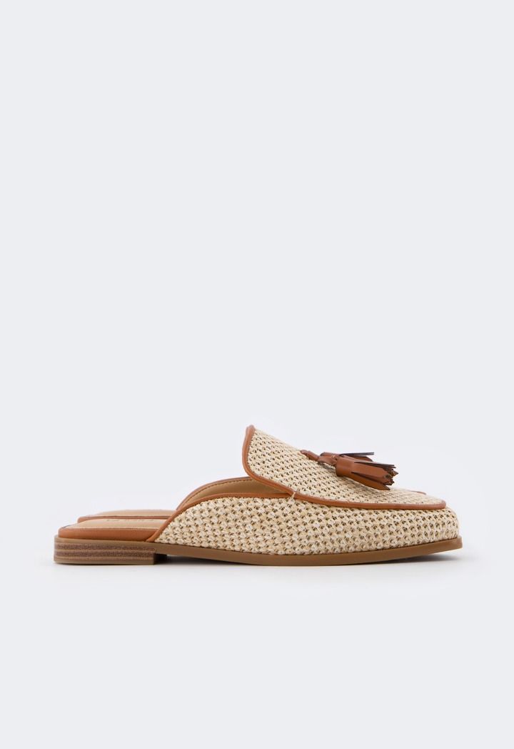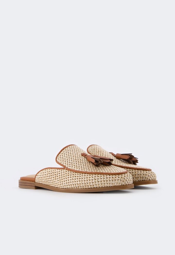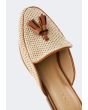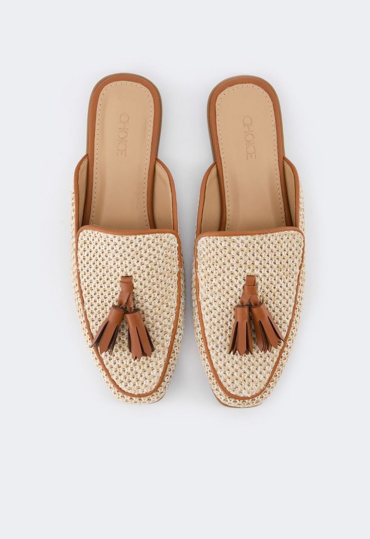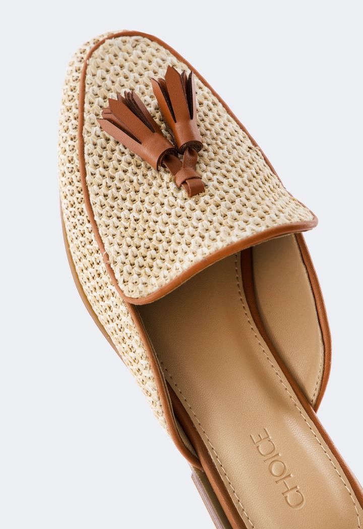 Cover your feet with comfort yet while still looking good, featuring this uniquely intriccate faux straw and PU Leather.