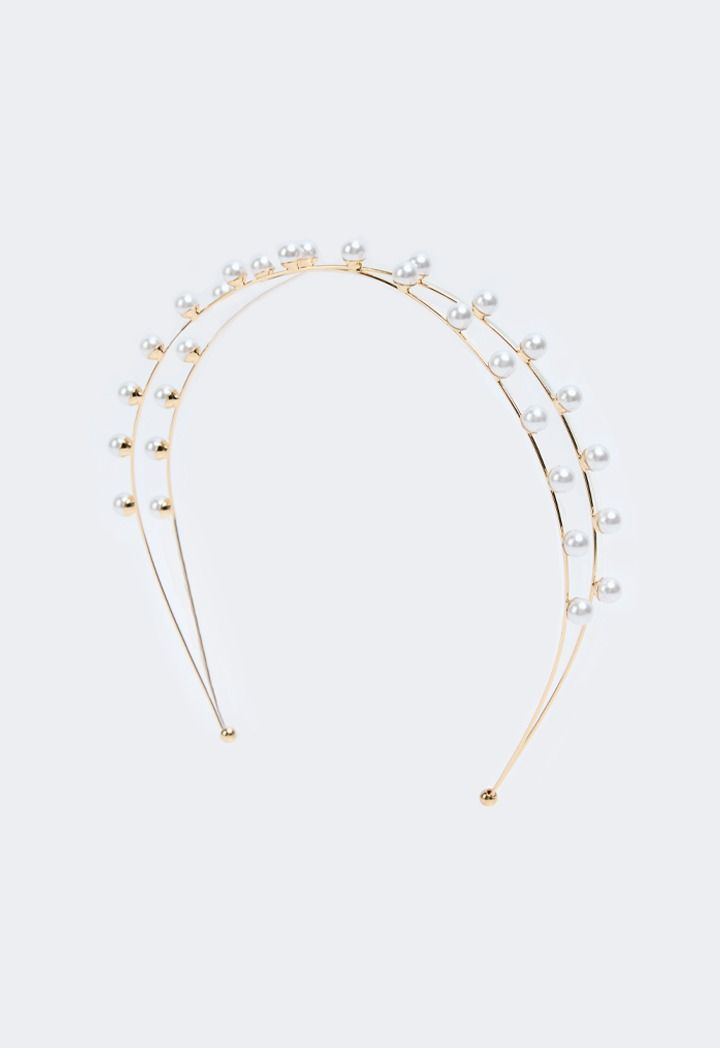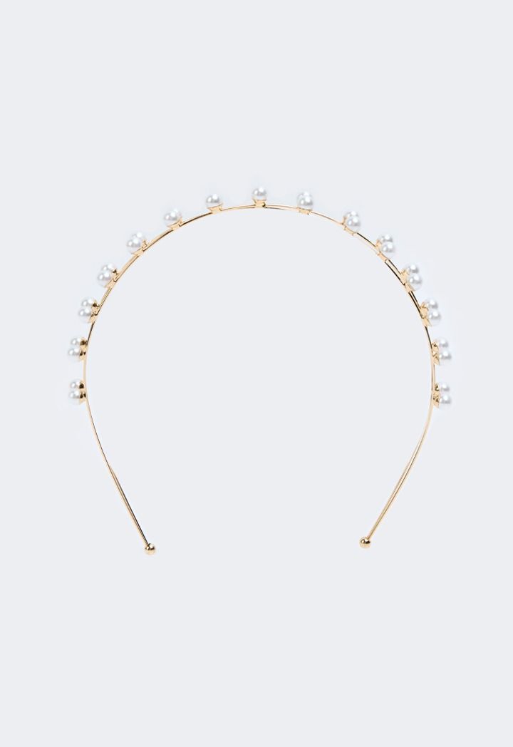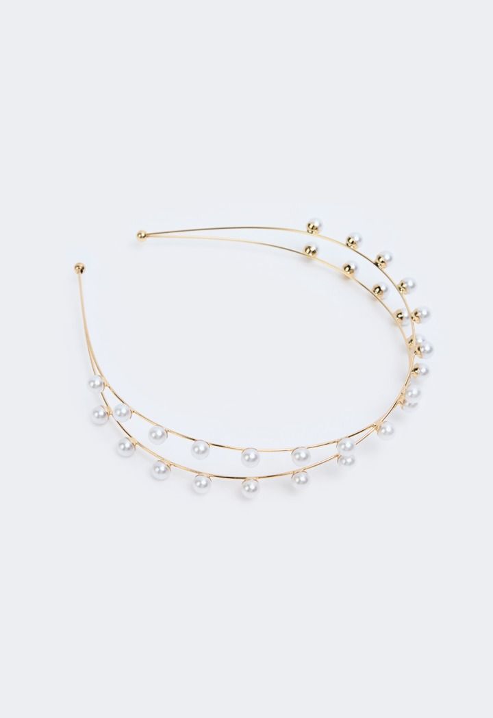 Style your hair with this metallic headband that features a sparkling faux pearls embellished design.