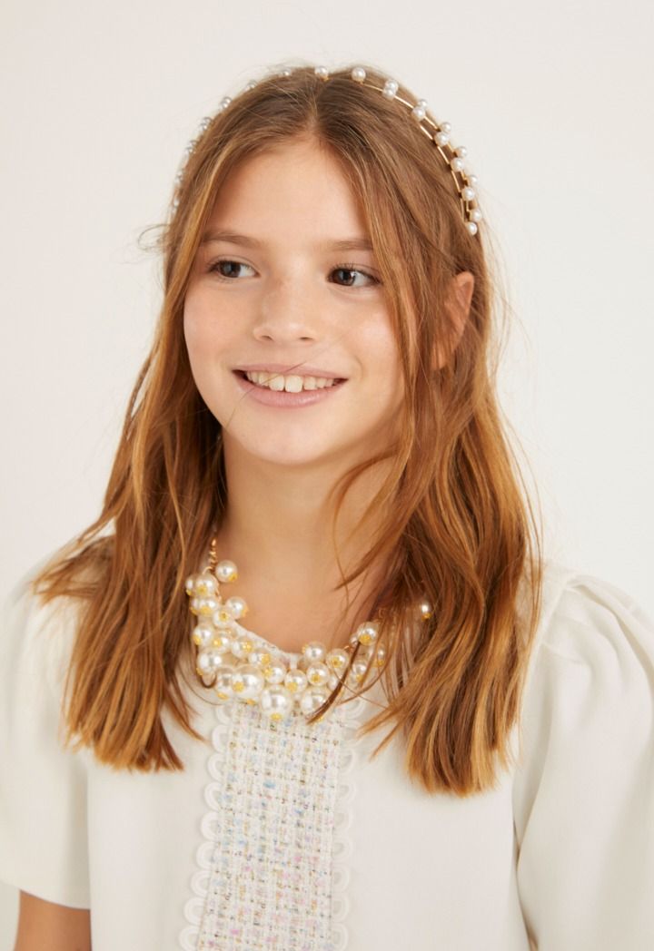 Girls' Gold Intricate Metallic Faux Pearls Headband | Riva Fashion