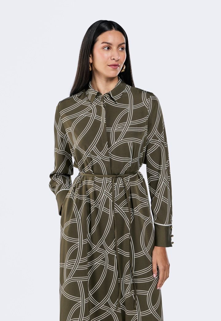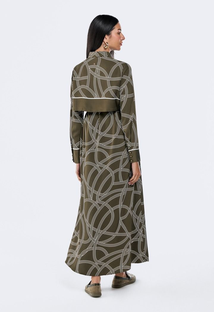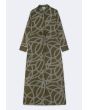 Design: Intricate Print, Belted, Back Storm Flap, Side Pockets