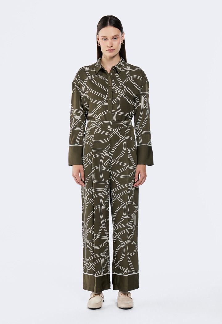 Design: Intricate Print, Side Pockets, Straight Cut, Front Pleats