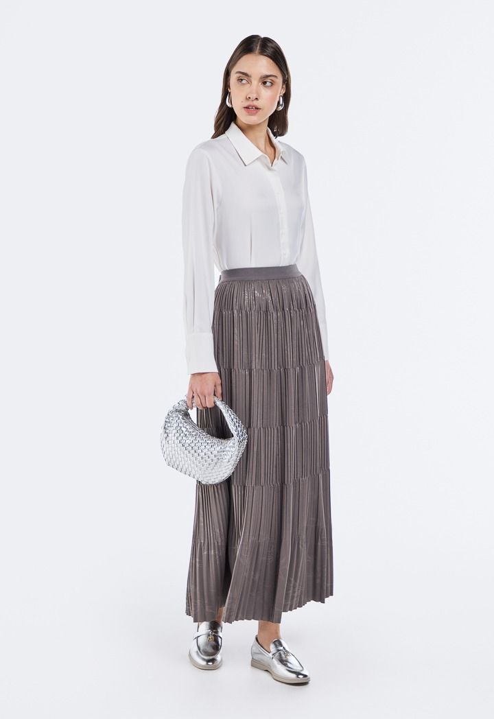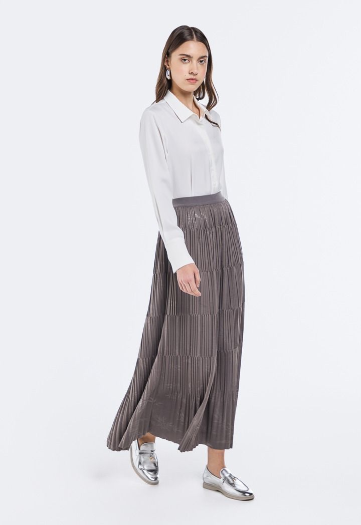 Jacquard Pleated Maxi Skirt |
