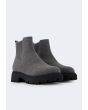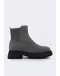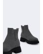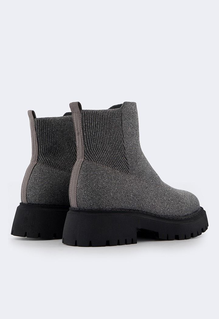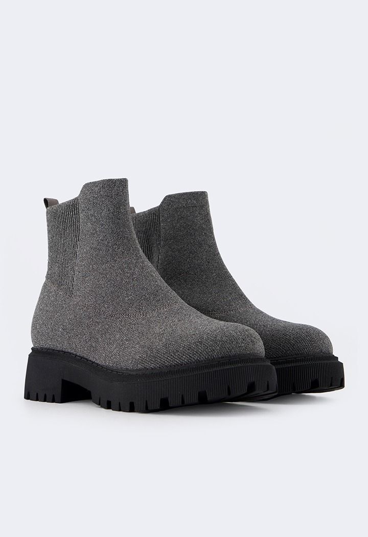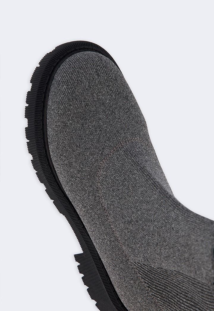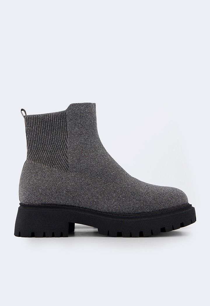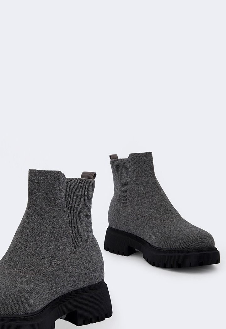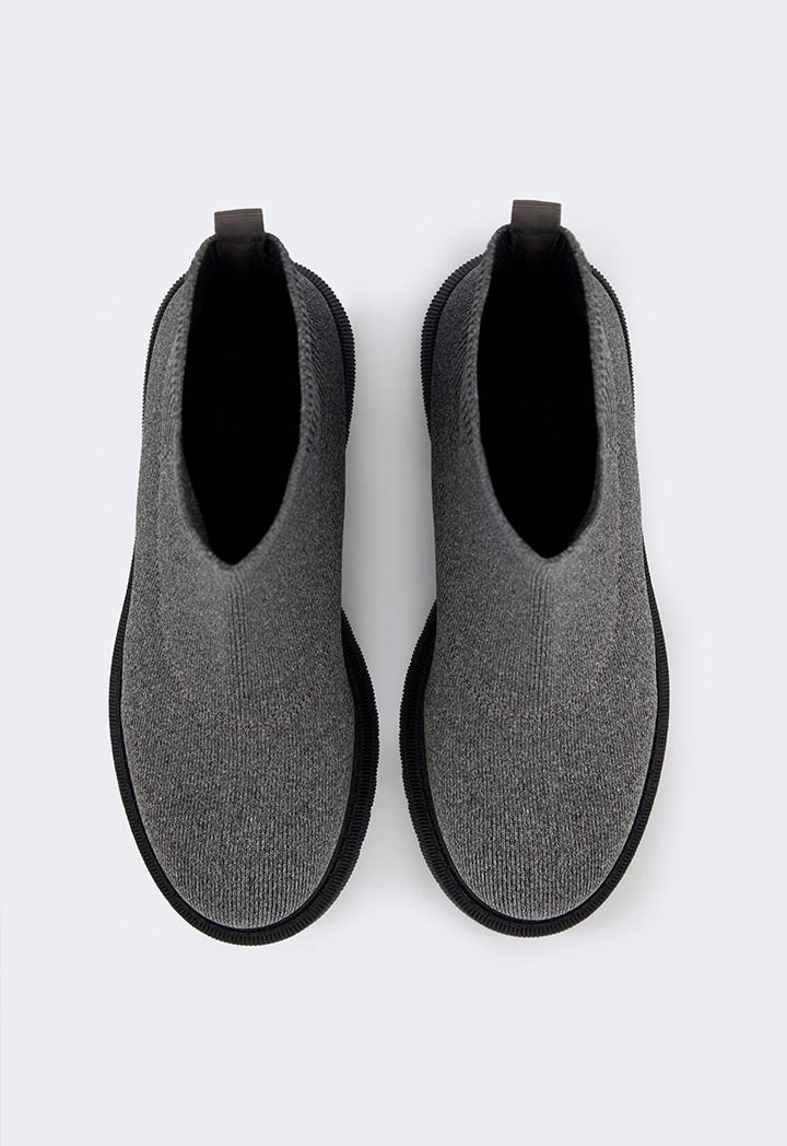 A solid pair of ankle boots that are knitted and feature a laceless design.