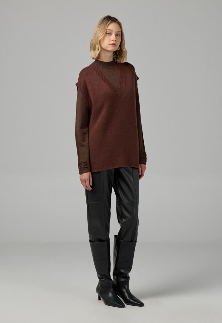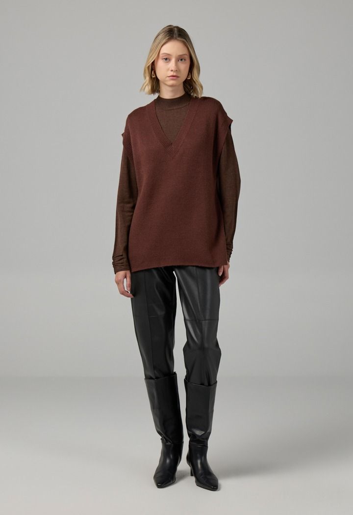 When the weather gets cold, add this knitted vest to your collection to stay warm.