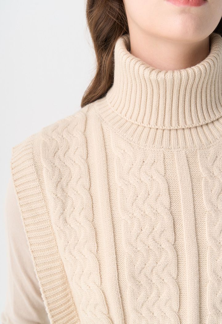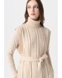 A stylish piece that features a knitted design, a turtleneck and a belt to accentuate your waist.