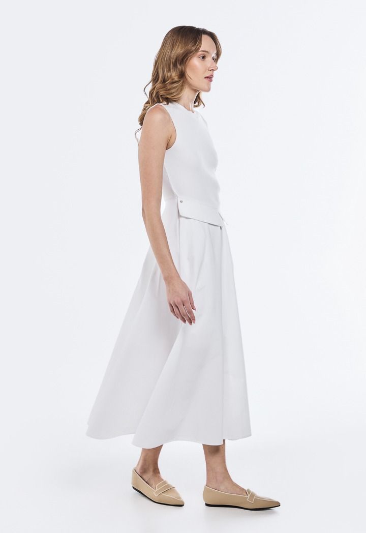 Knitted Bodice Woven Skirt Dress |