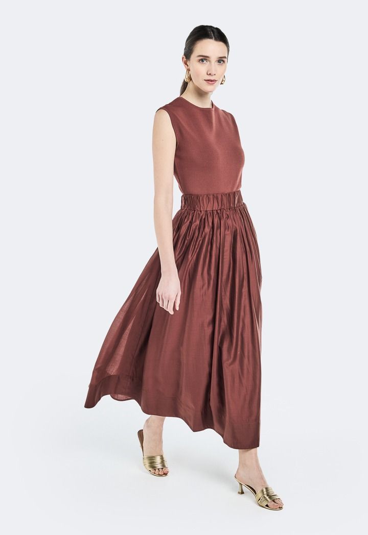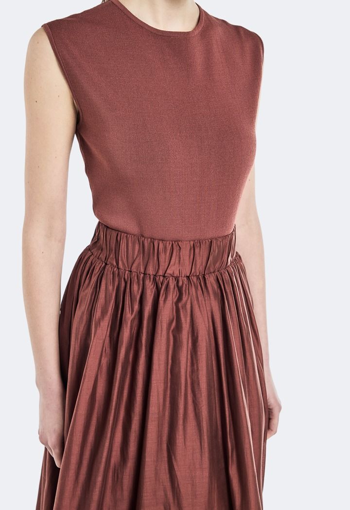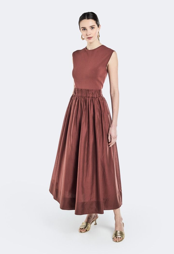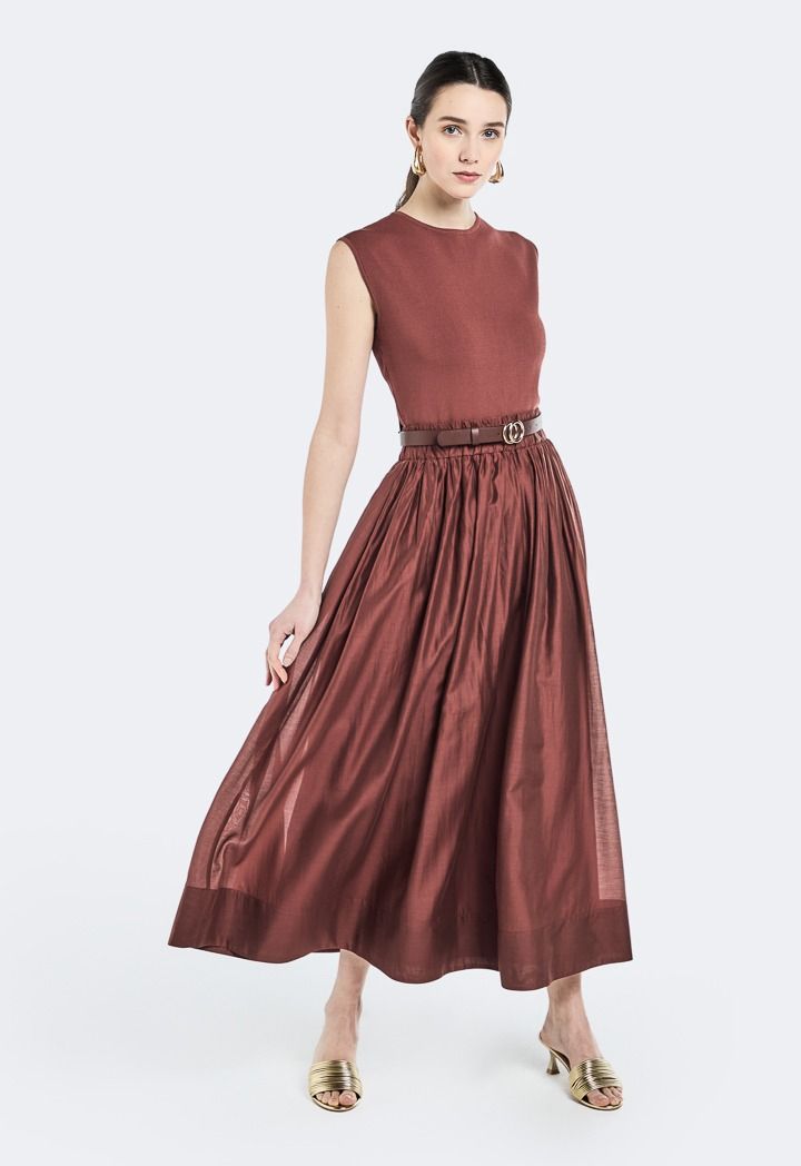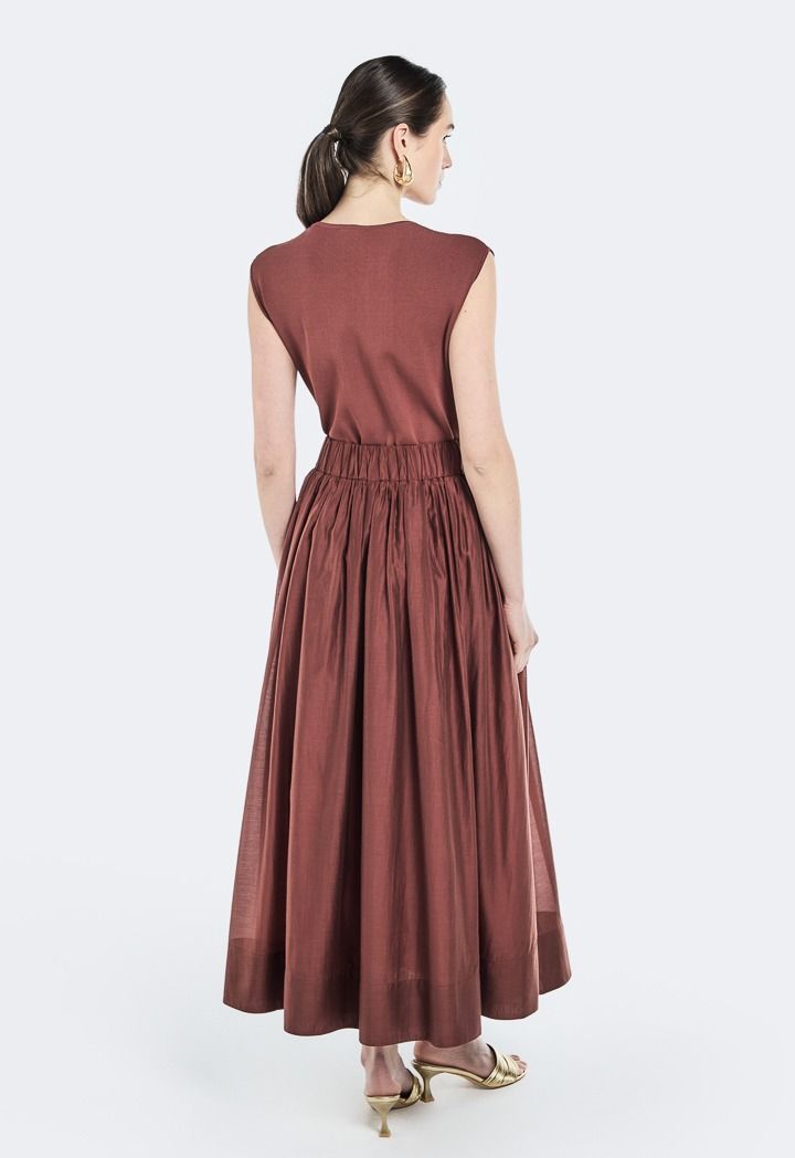 Design: Solid, Flared, Attached Lining, Knitted Bodice, Woven Skirt