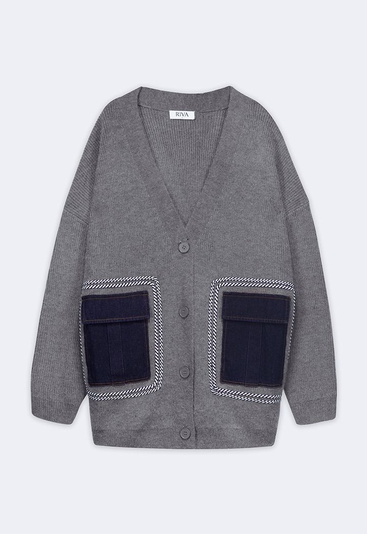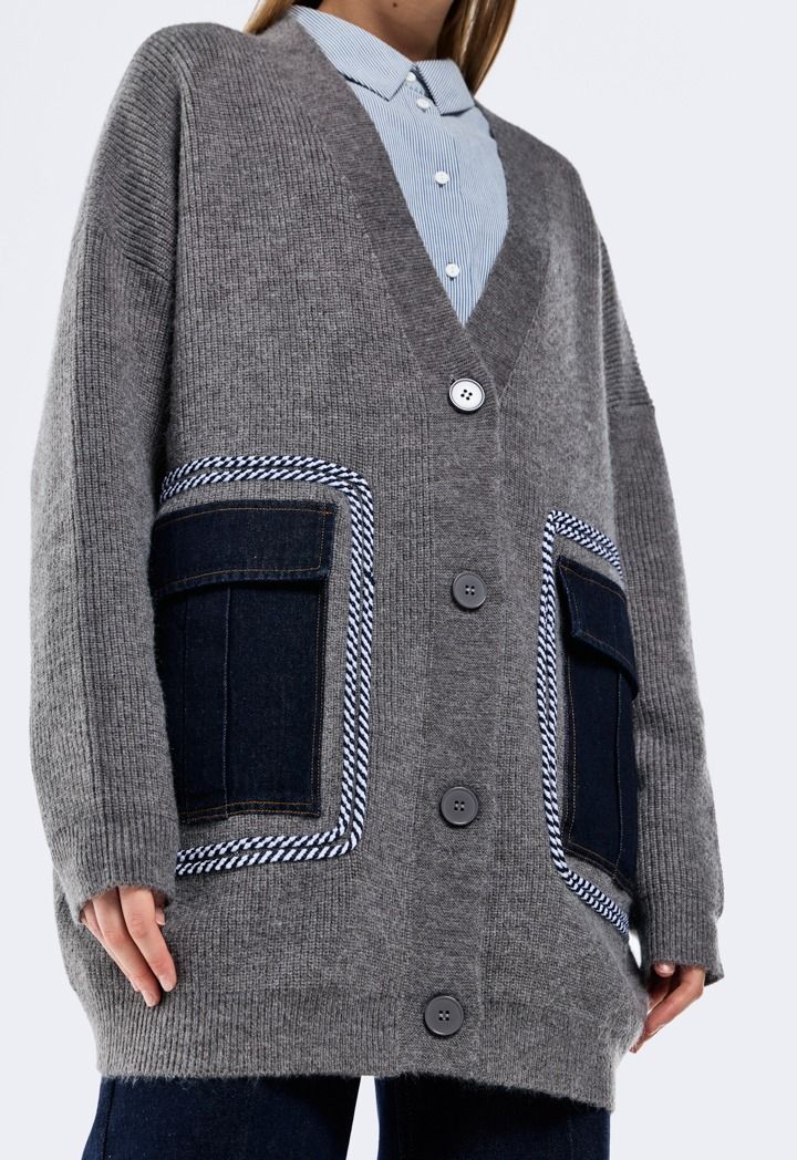 Knitted Cardigan With Denim Pockets |