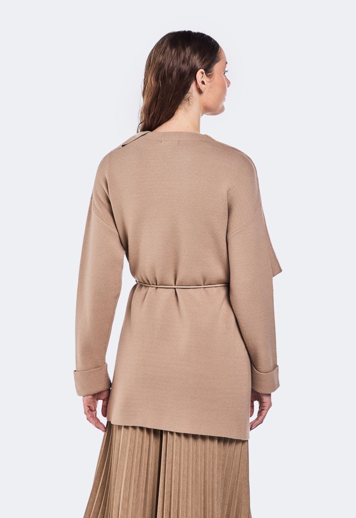 For a feminine look, this knitted cardigan with its drape details is the perfect winter outfit.
