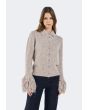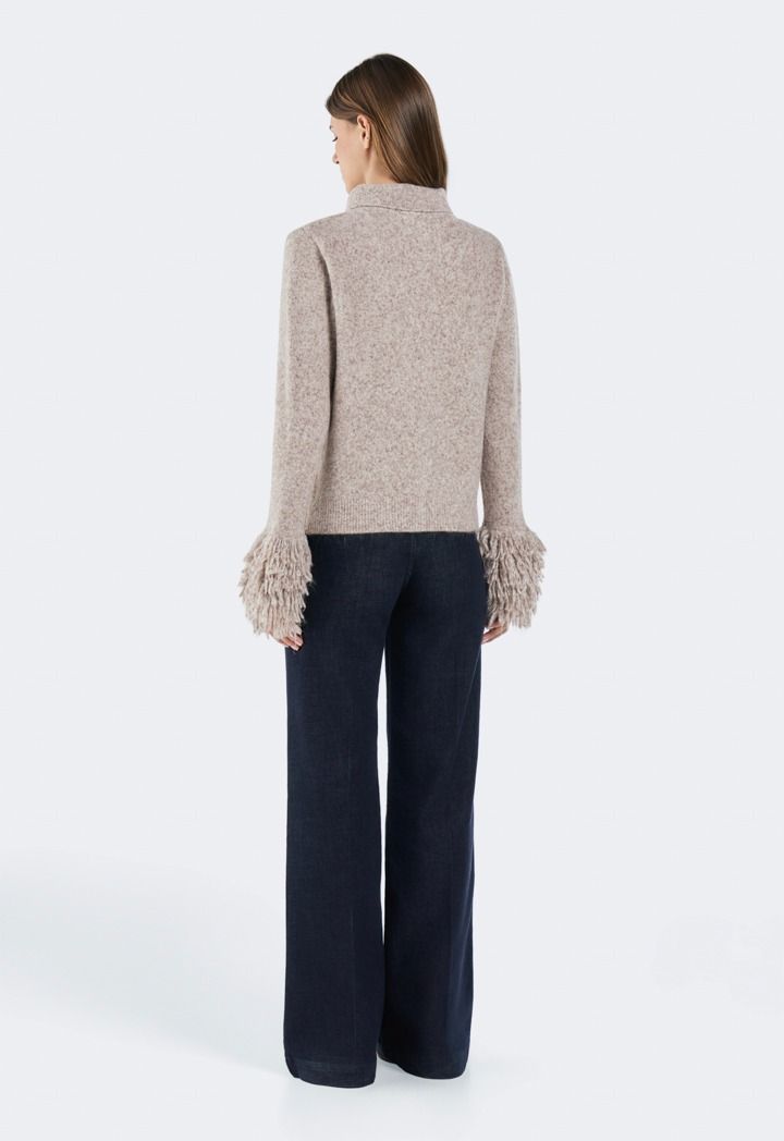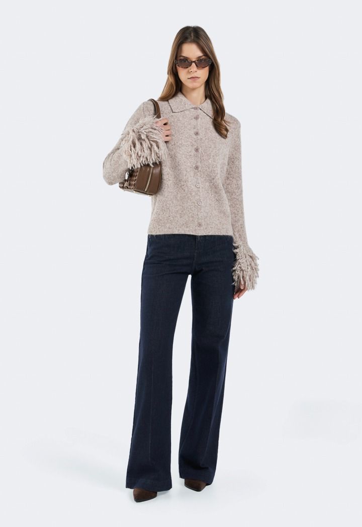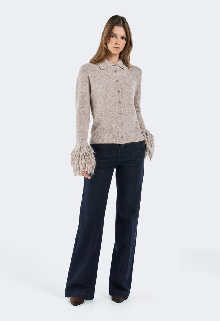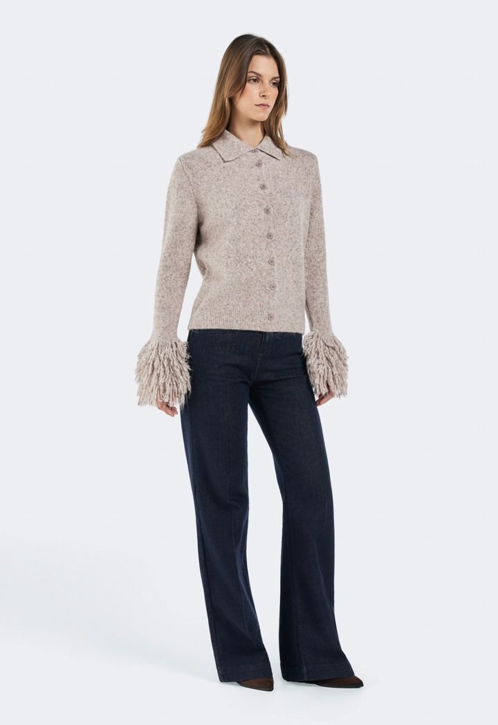 Knitted Cardigan with Fringed Sleeves |