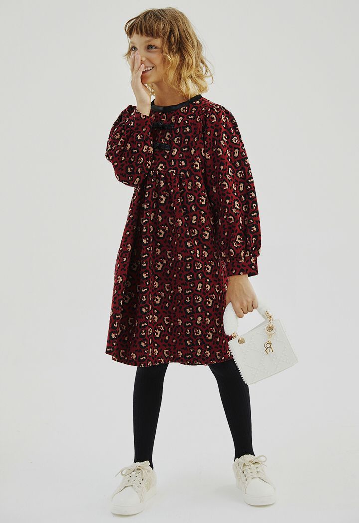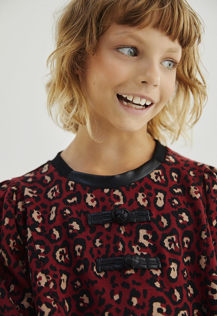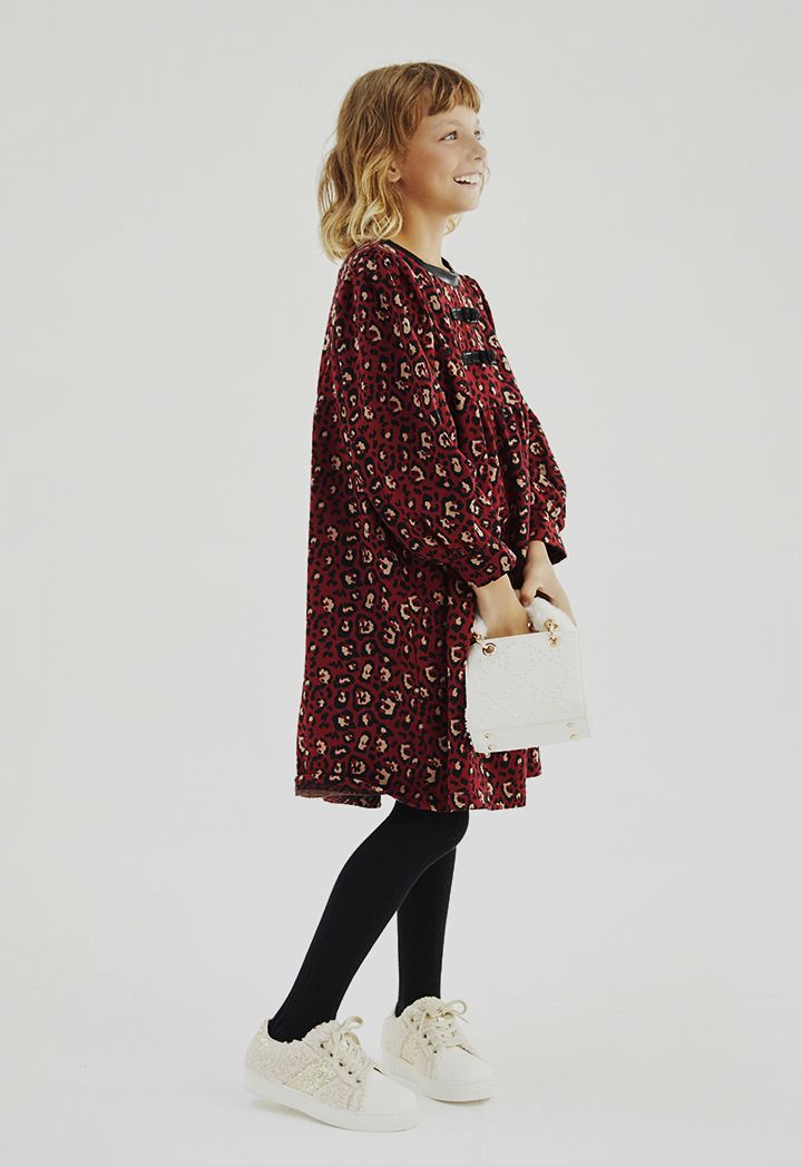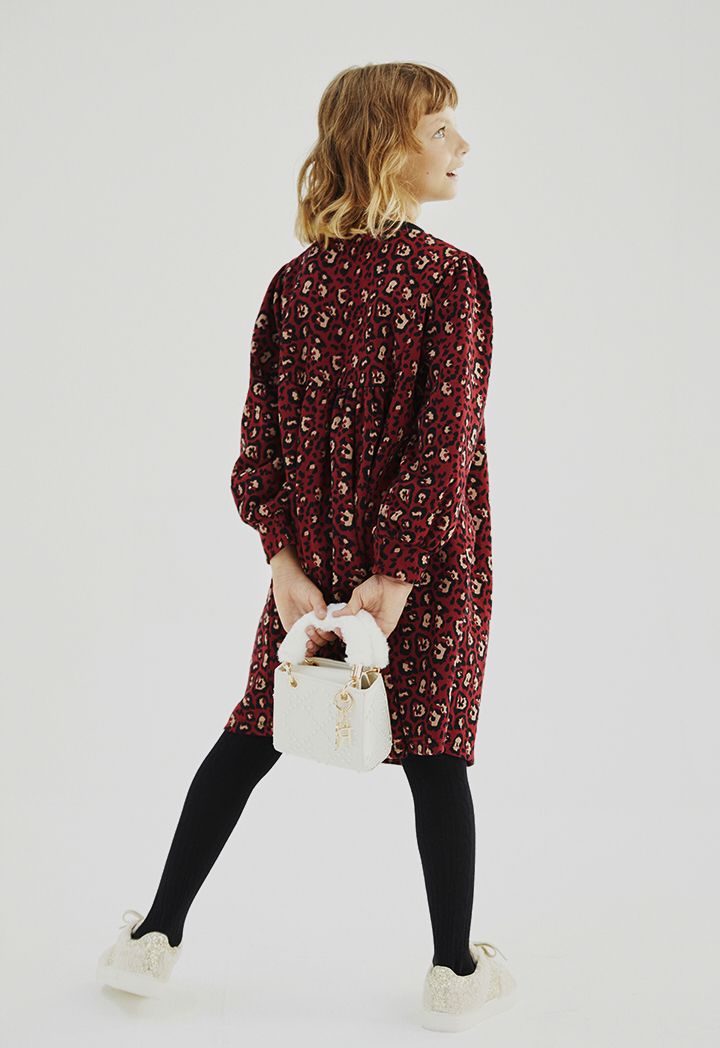 A long sleeved knitted dress that features an alluring cheetah design that is hard to miss.