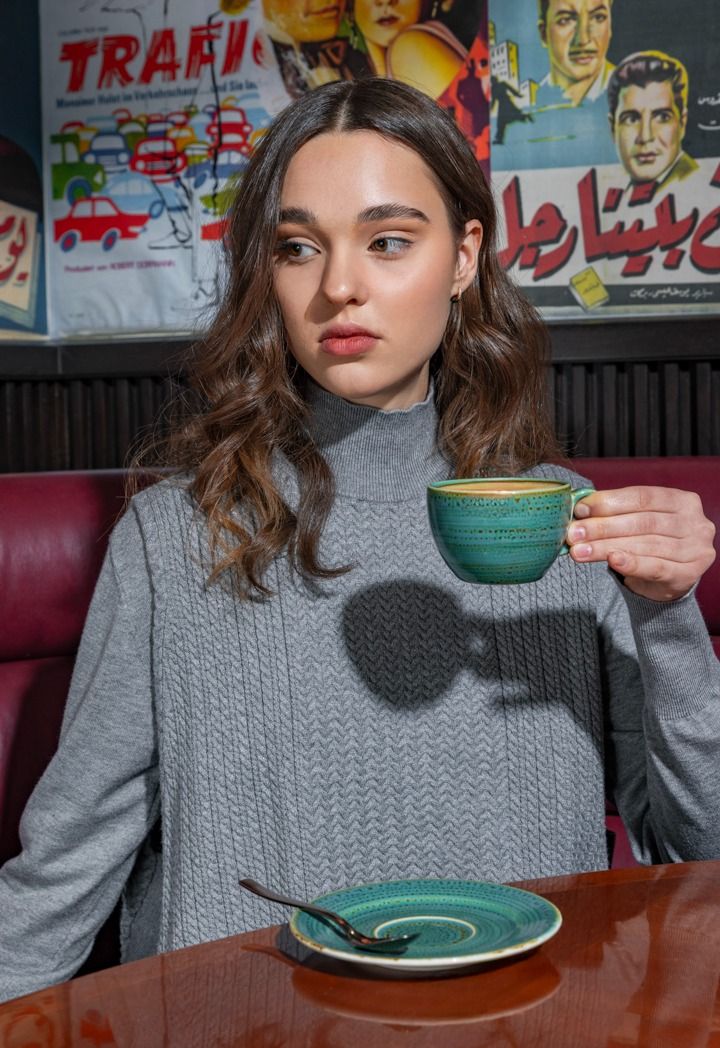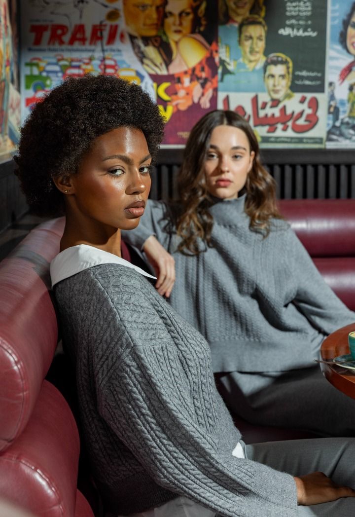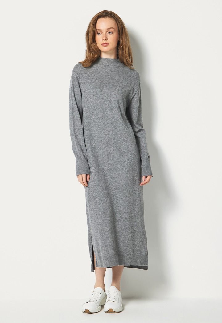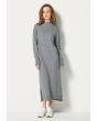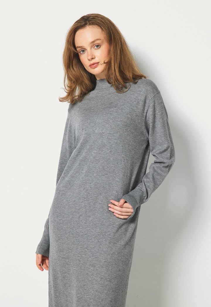 A plain knitted dress set with a high neck and a sleeveless vest for a warm winter.