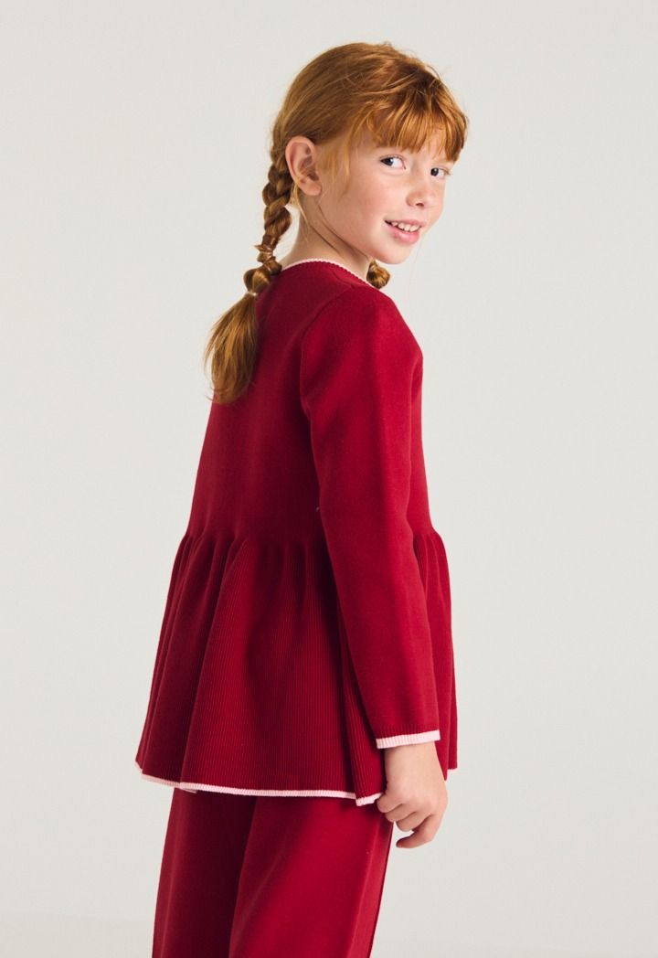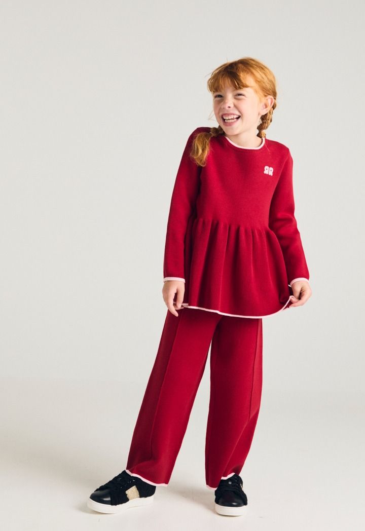 This Cute Contrast Blouse with a pleated waist Can be Adorned with a pair of Knitted Trousers or Jeans.