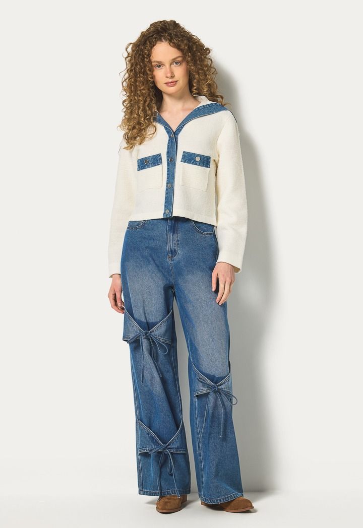 Design: Knitted, Contrast, Denim, Elastic, Front Pockets