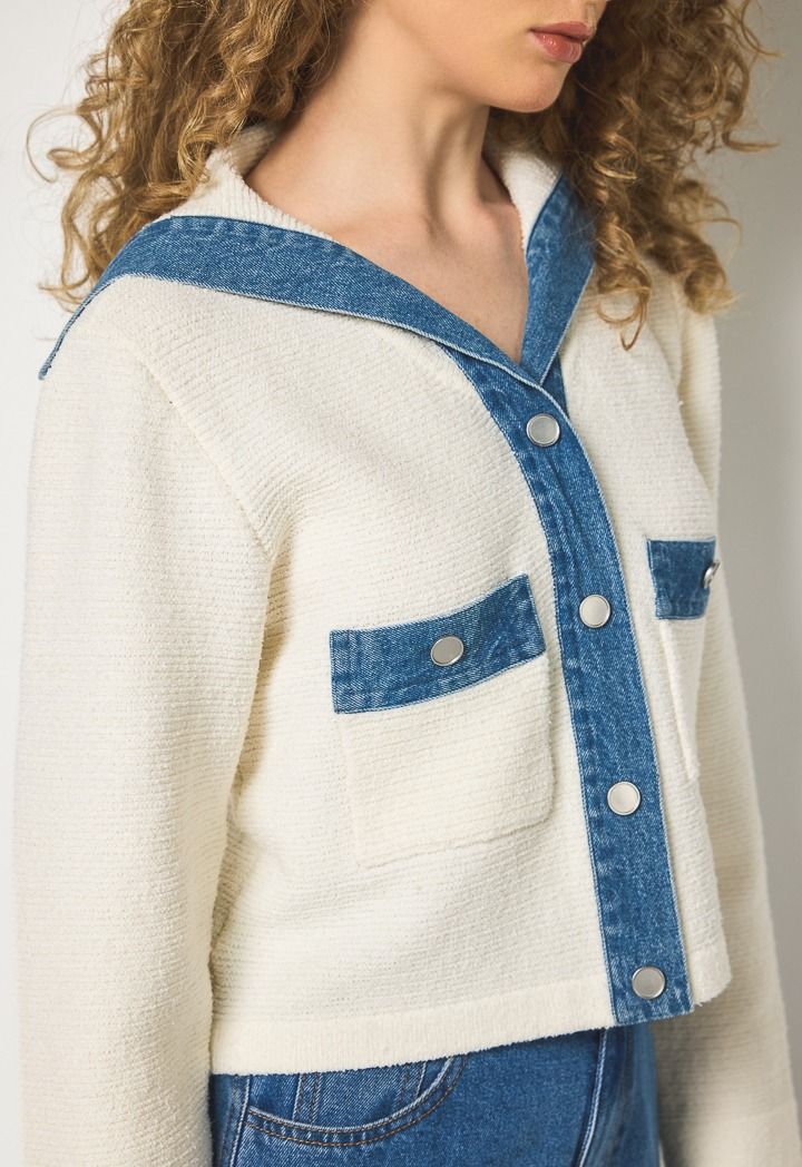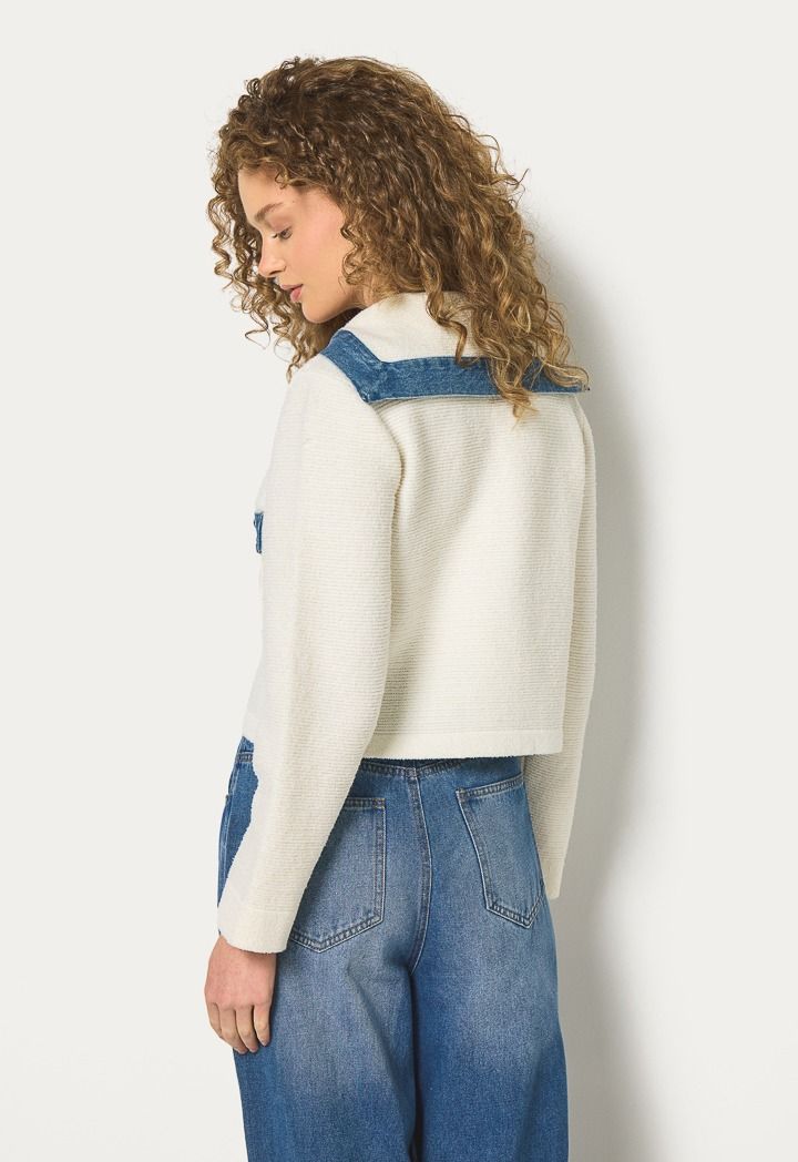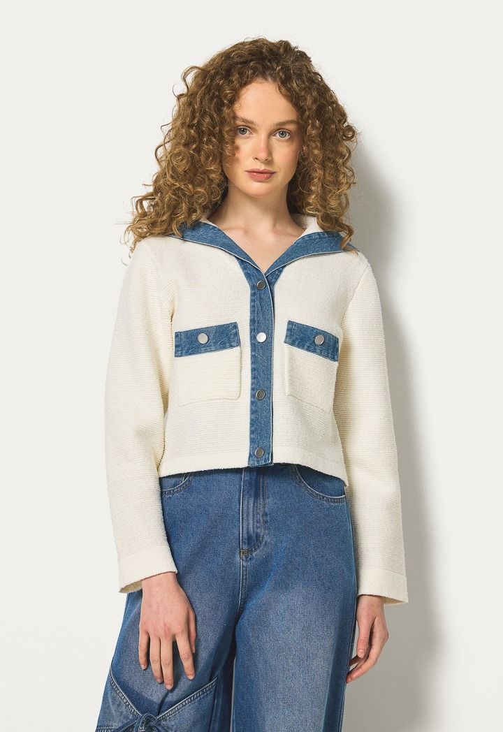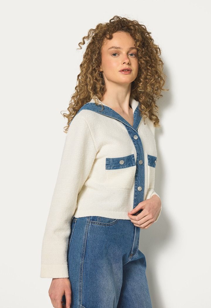 Elastic and knitted cropped jacket can be easily styled with your formal attire or a pair of jeans.