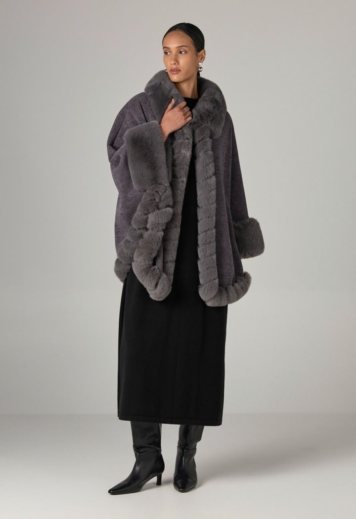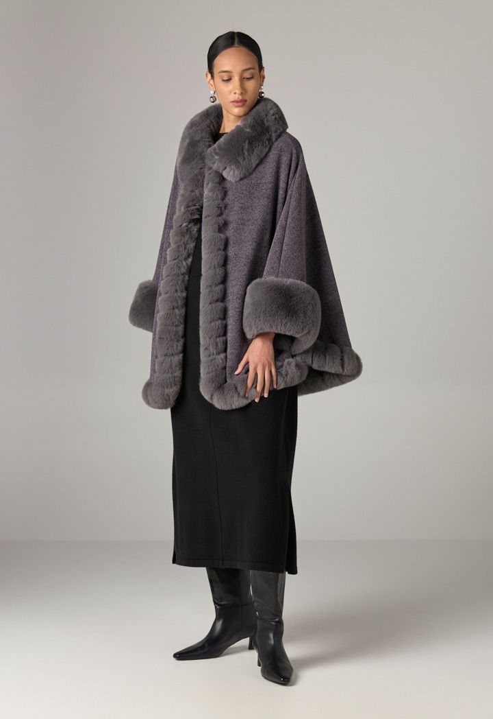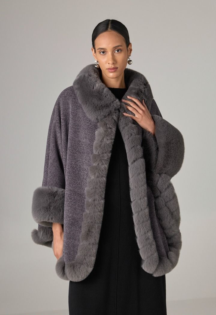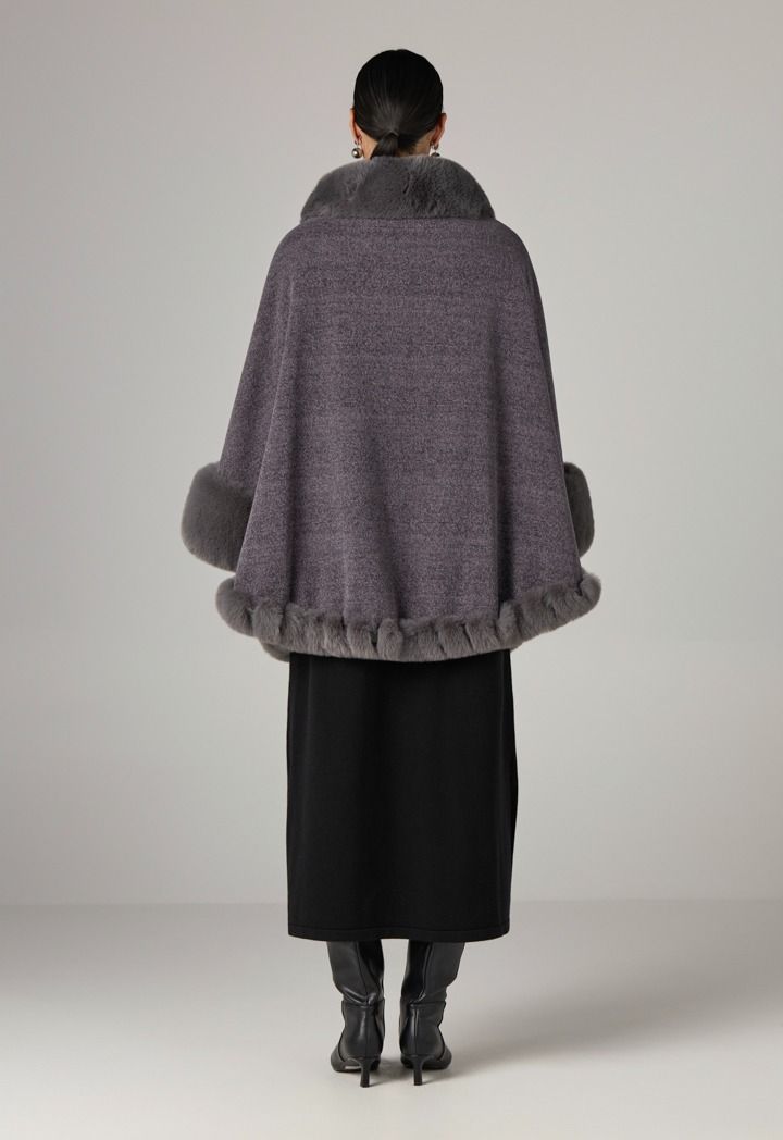This knitted poncho adds a touch of class to your outfit with its embellished faux fur details.