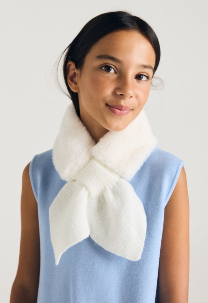 A unique scarf that combines the soft faux fur with the warm knitted design.